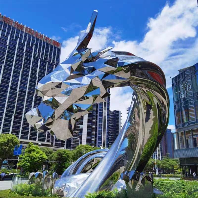 대형 야외 추상 원형 캠퍼스 조각 수채화 고래 야외 풍경 장식품을 만드는 스테인레스 스틸 조각