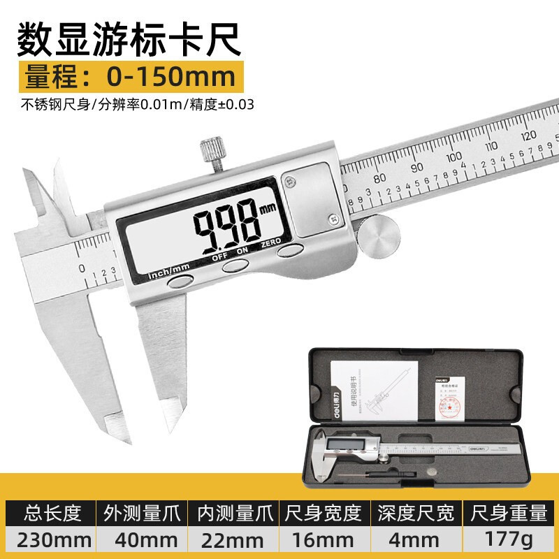 델리 전자 디지털 디스플레이 캘리퍼 버 니어 캘리퍼 스테인레스 스틸 오일 마크 가정용 소형 고정밀 기계 버니어스토어 가기