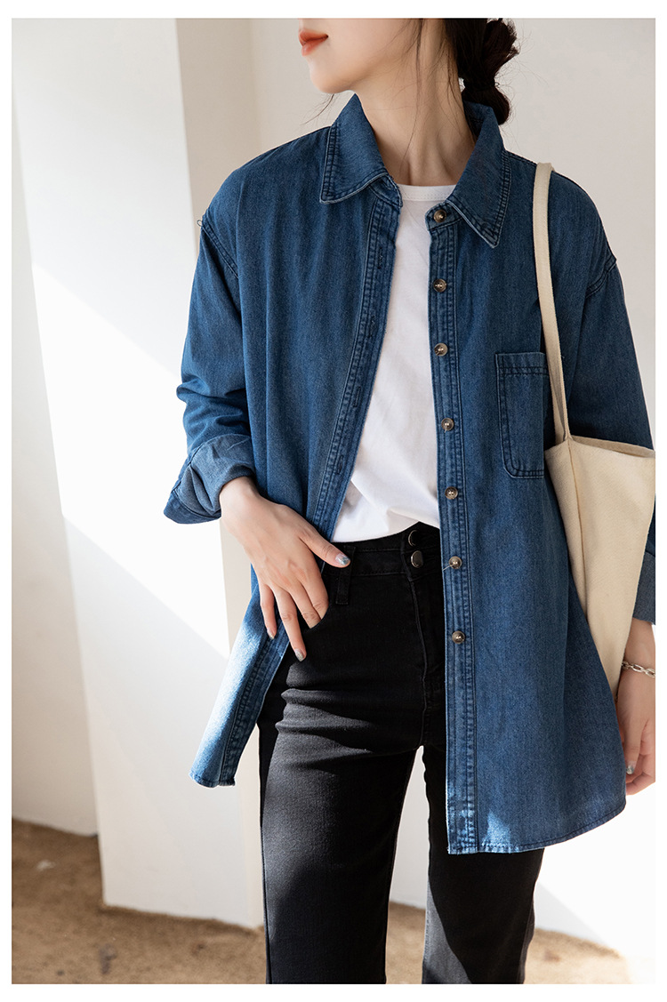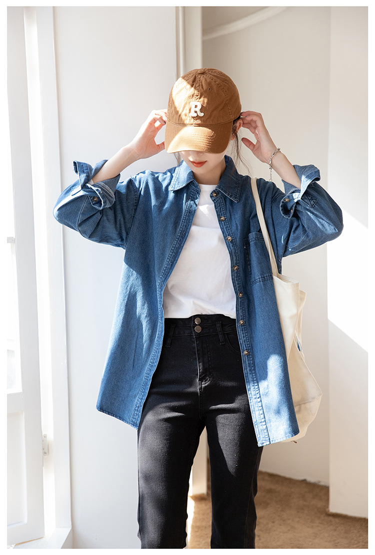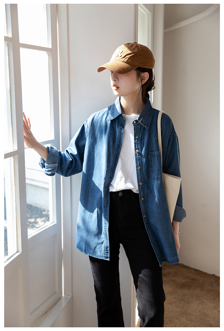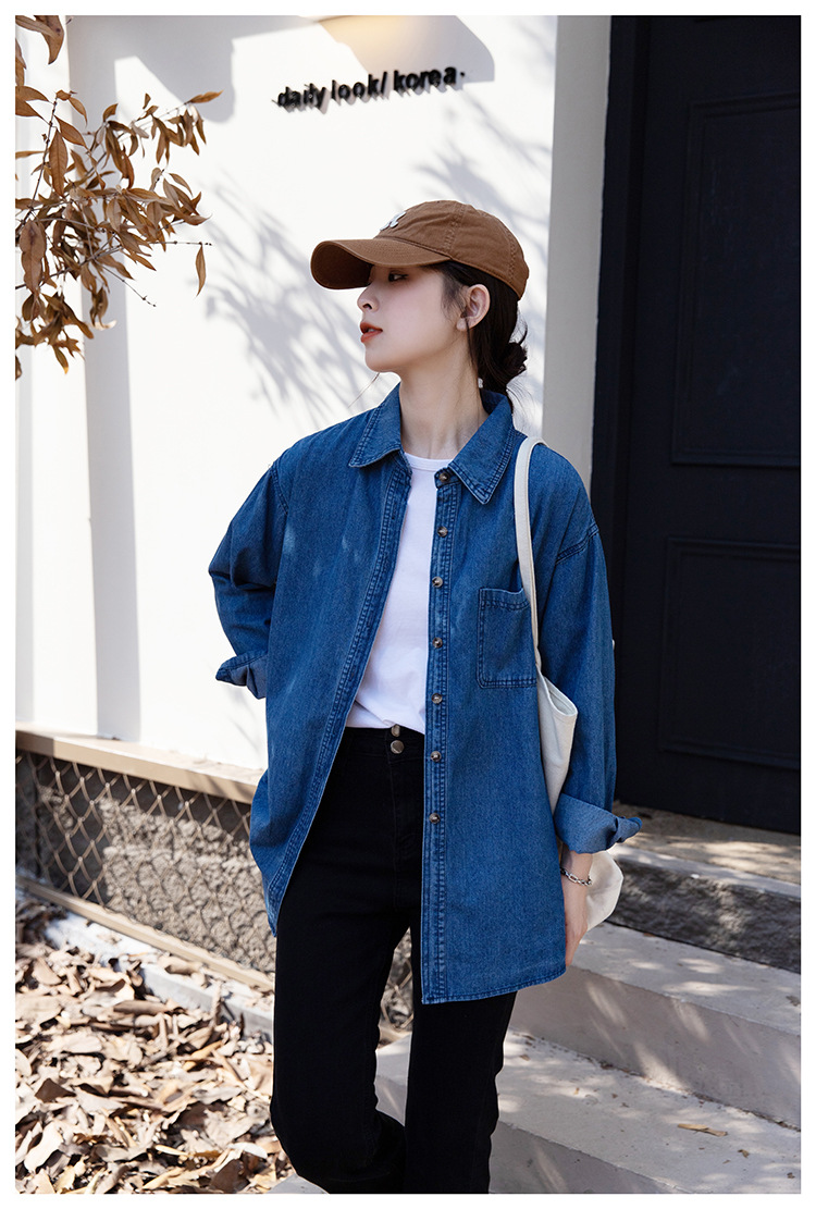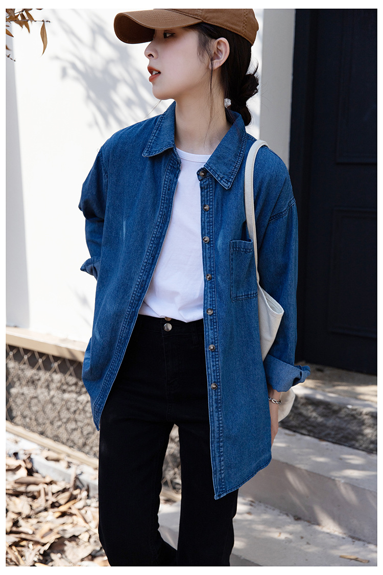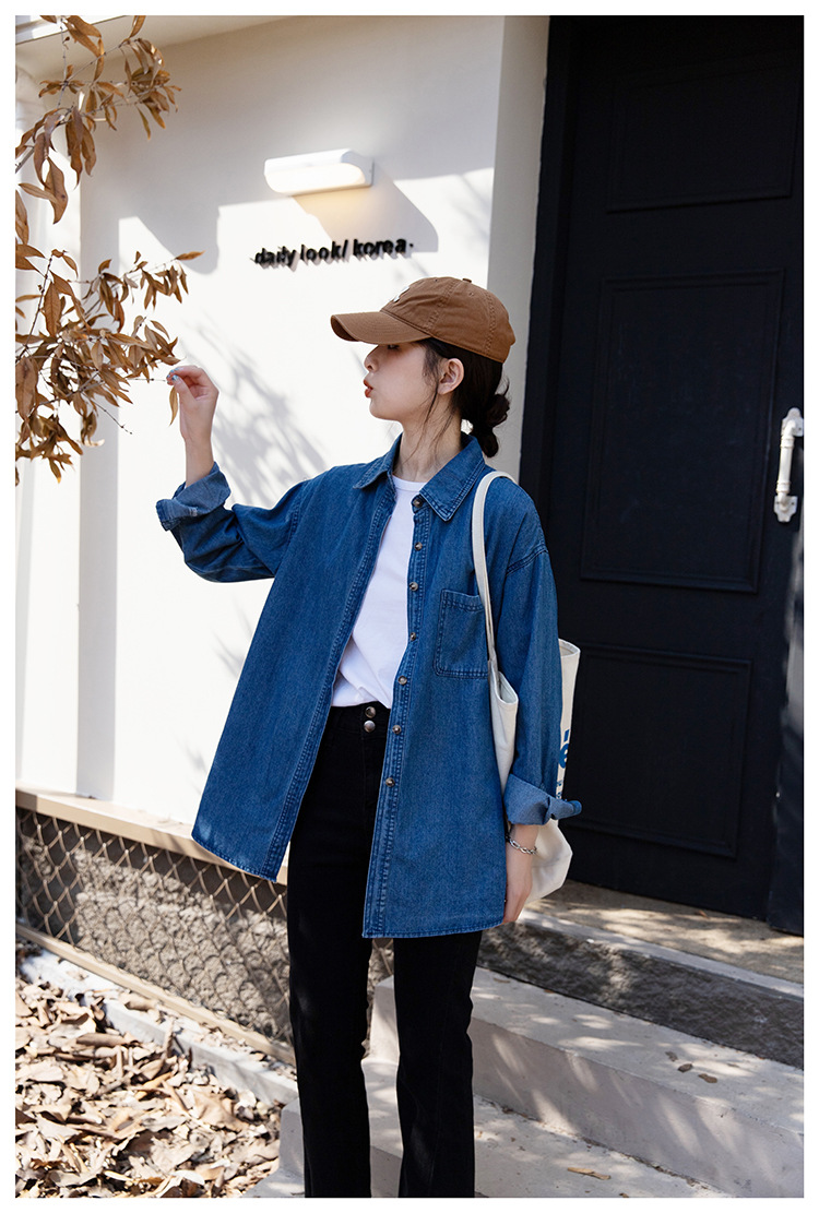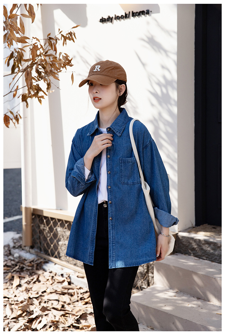 2025 가을 신상 데님 셔츠 여성용 한국 스타일 중간 길이 재킷 레트로 긴팔 레이어드 셔츠 재킷 상의스토어 가기