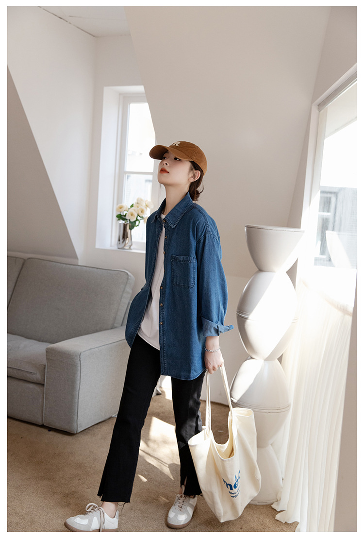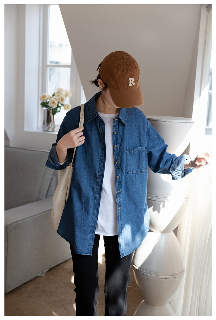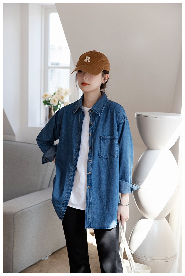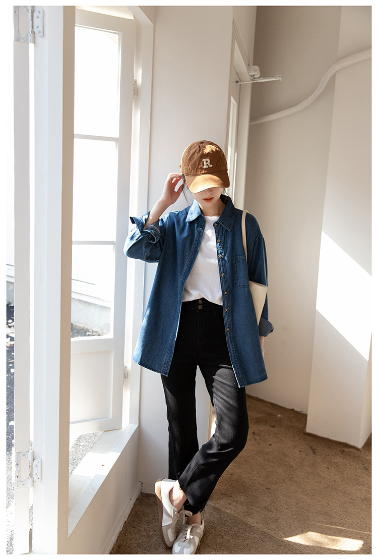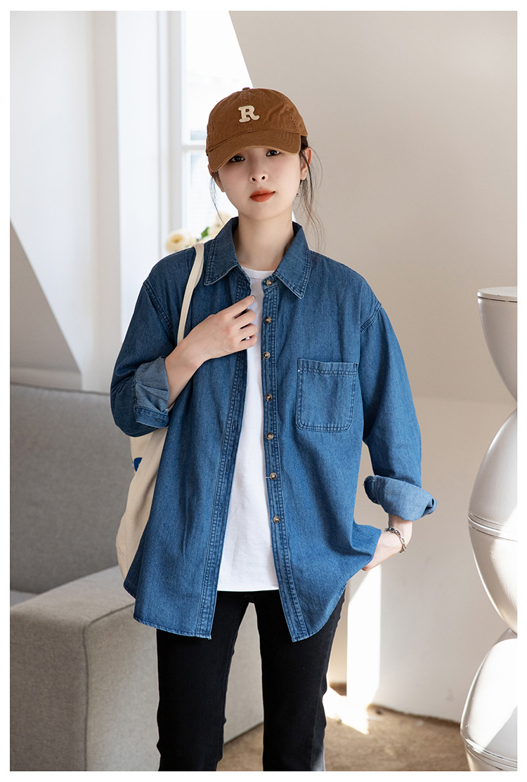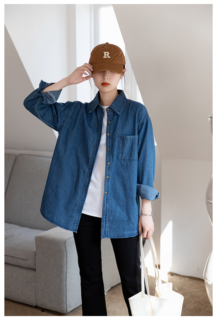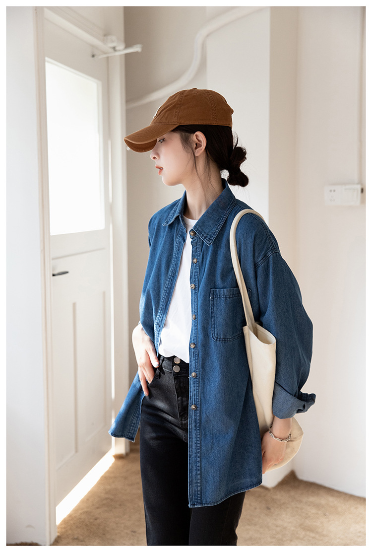 2025 가을 신상 데님 셔츠 여성용 한국 스타일 중간 길이 재킷 레트로 긴팔 레이어드 셔츠 재킷 상의스토어 가기