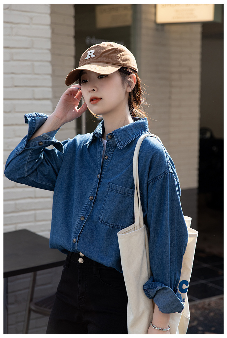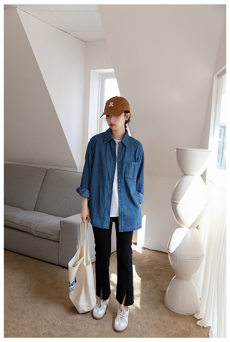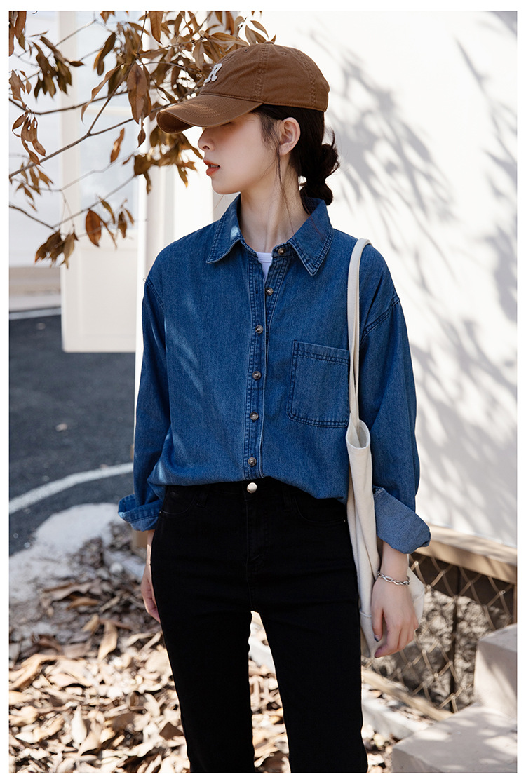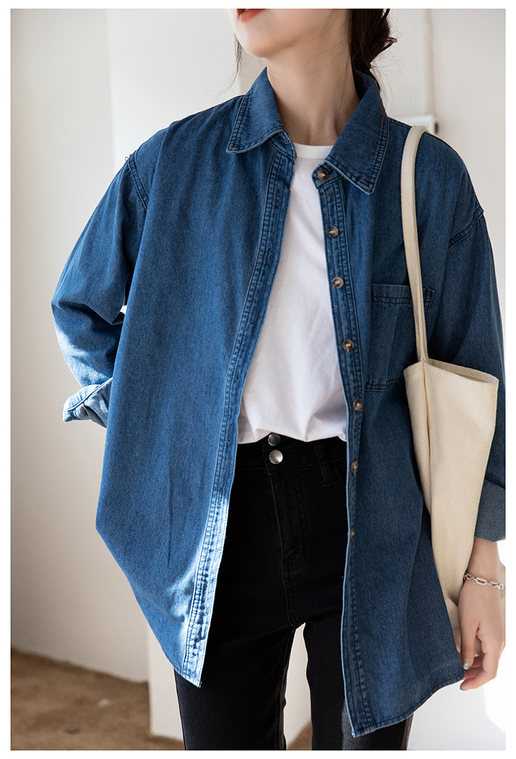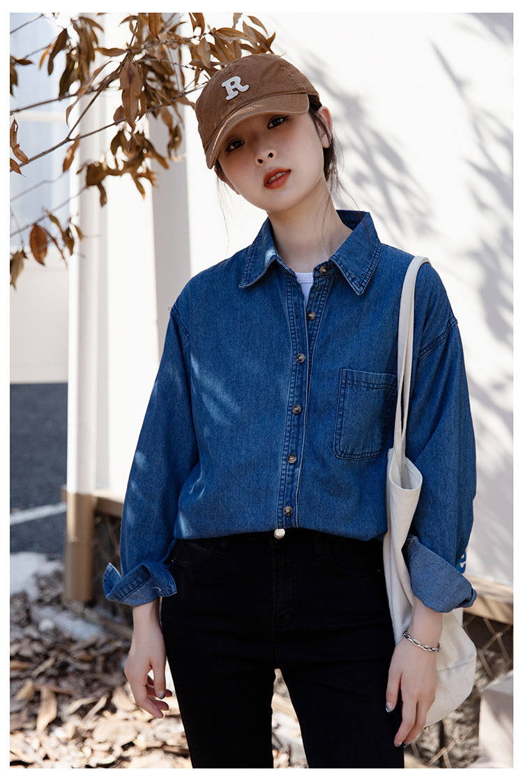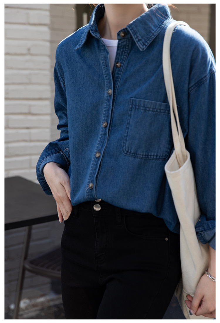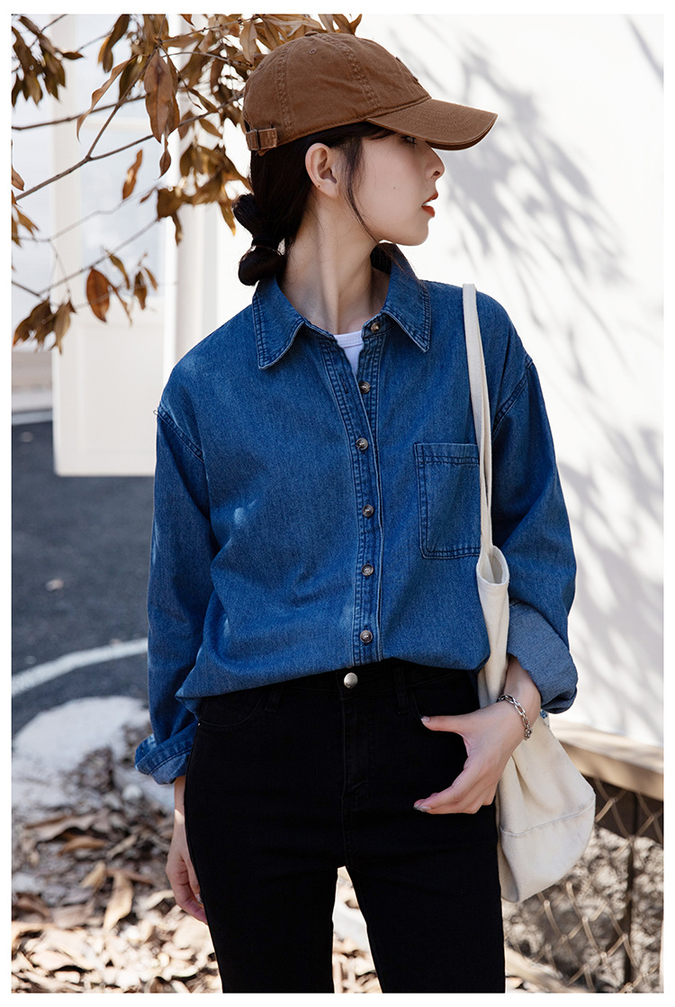 2025 가을 신상 데님 셔츠 여성용 한국 스타일 중간 길이 재킷 레트로 긴팔 레이어드 셔츠 재킷 상의스토어 가기