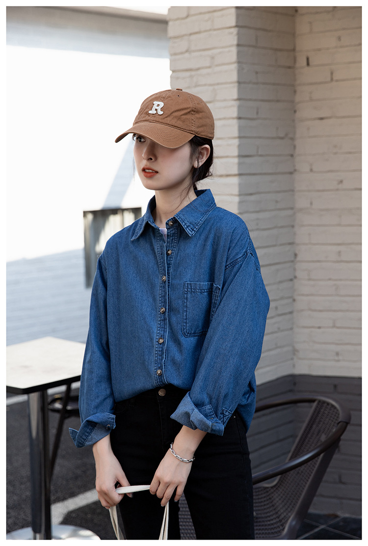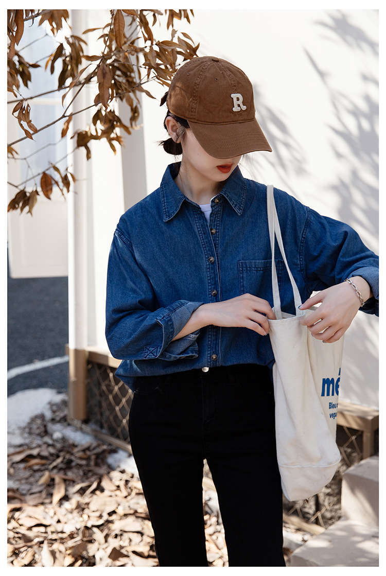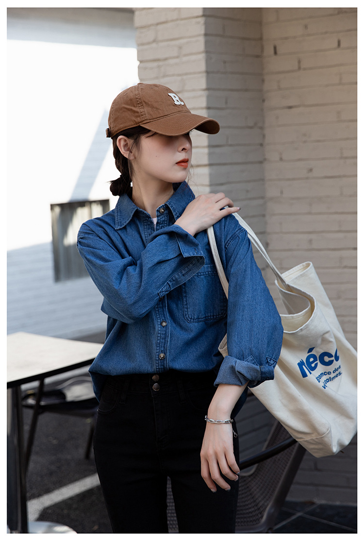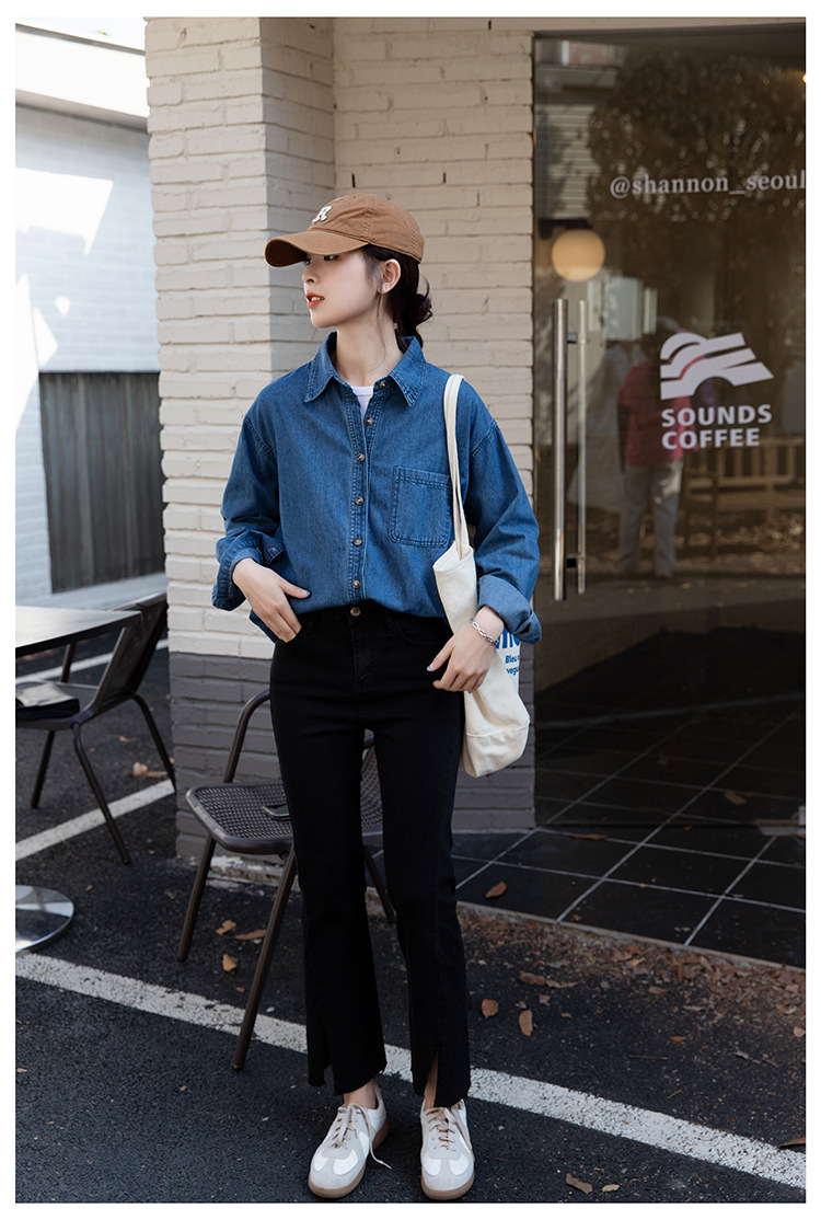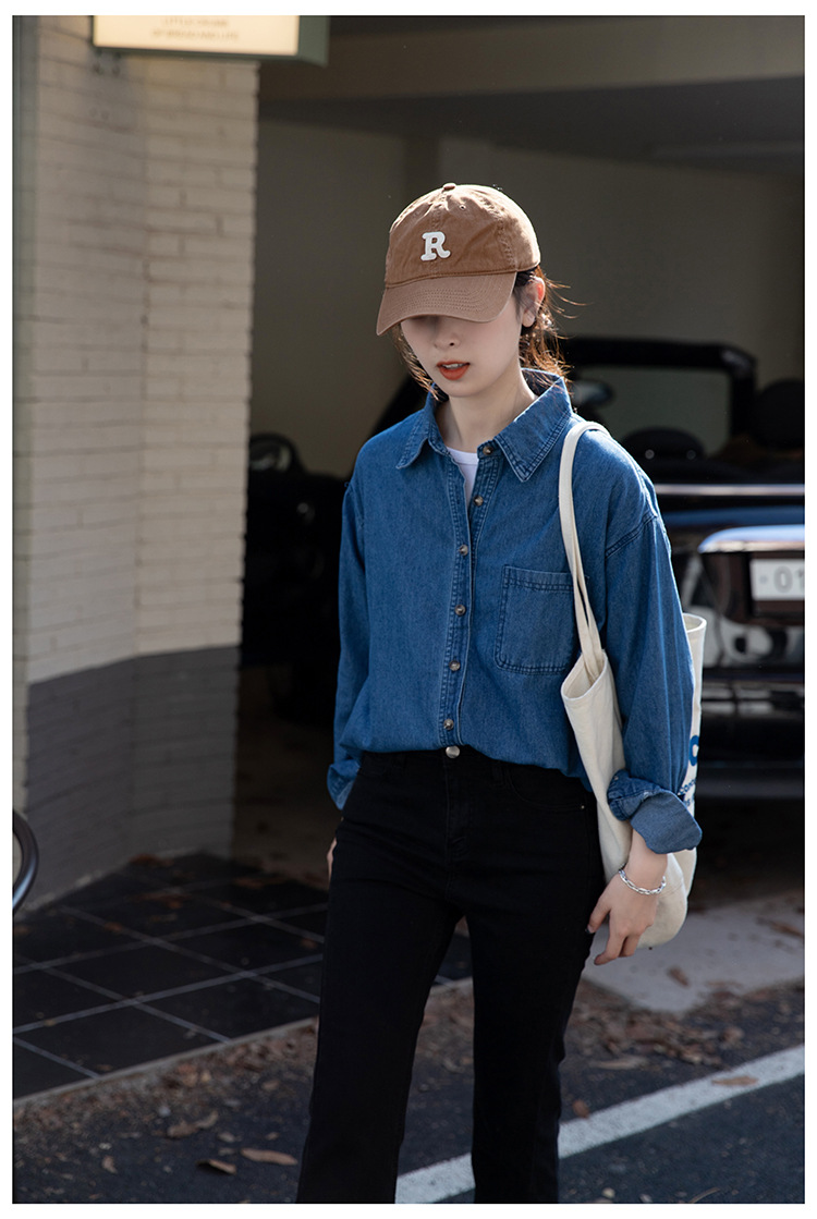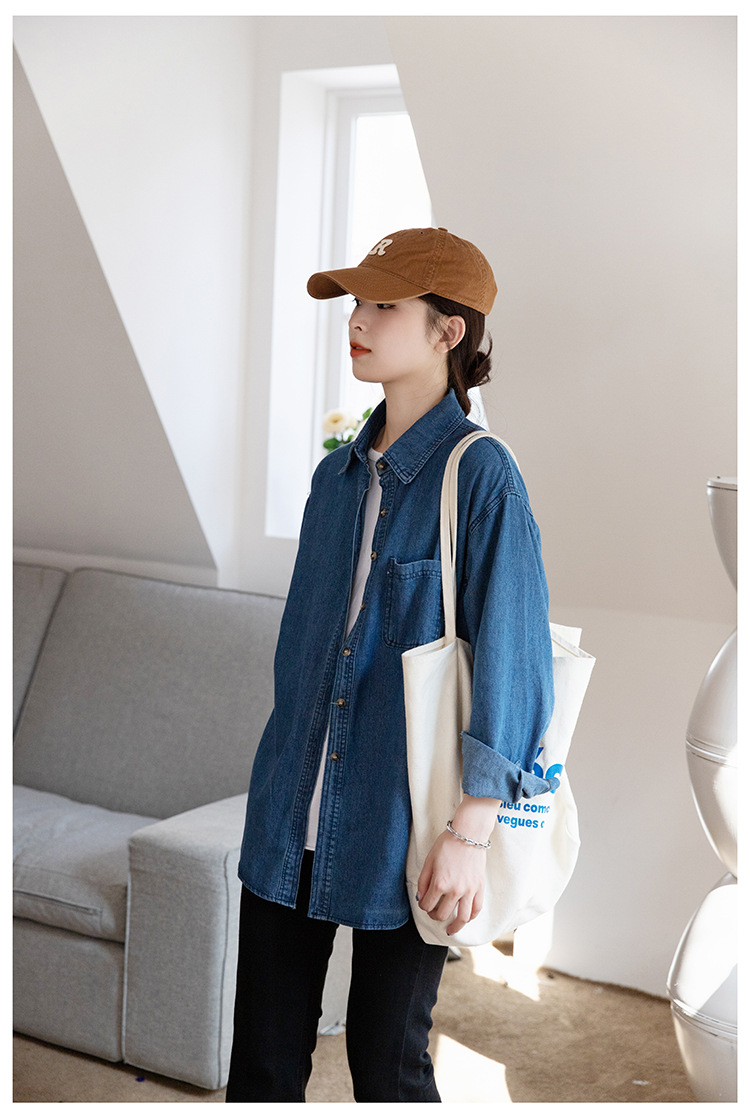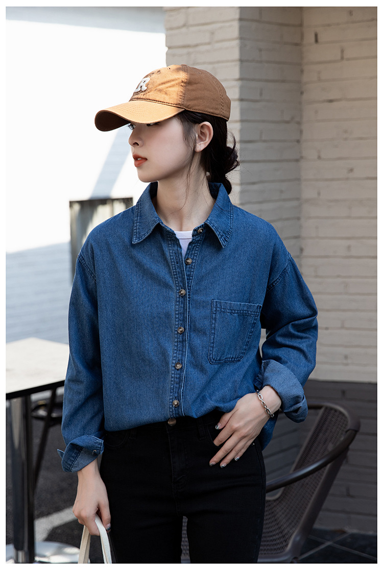 2025 가을 신상 데님 셔츠 여성용 한국 스타일 중간 길이 재킷 레트로 긴팔 레이어드 셔츠 재킷 상의스토어 가기