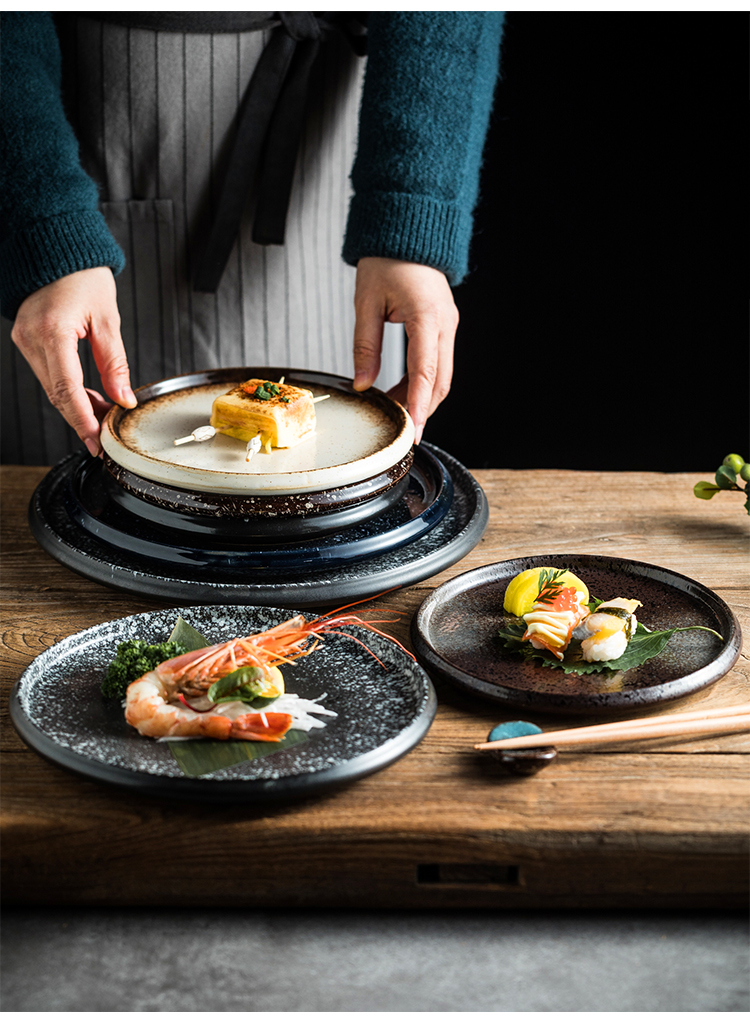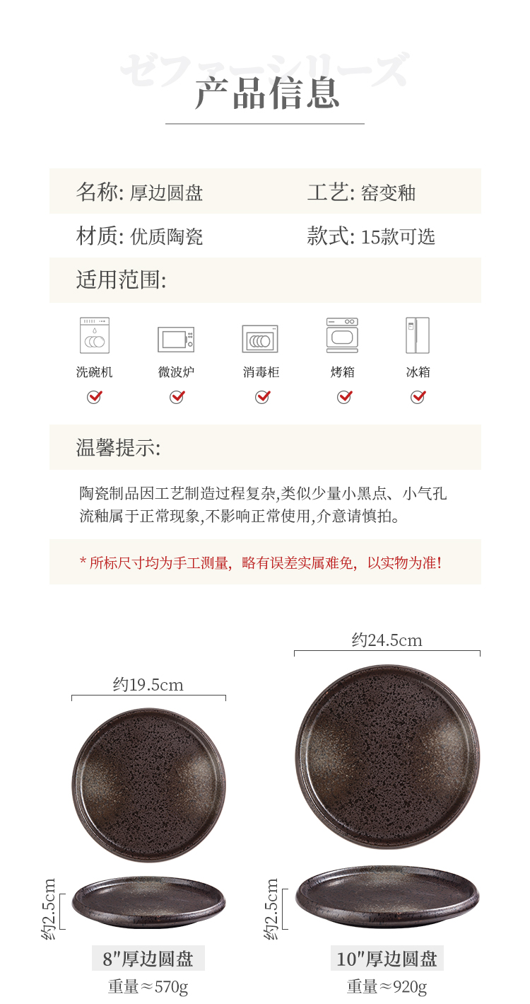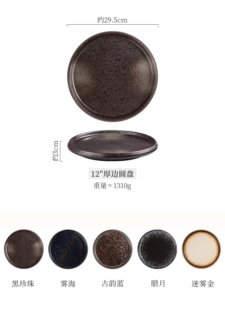 두꺼운 사이드 스테이크 플레이트 세라믹 플레이트 스테이크 플랫 플레이트 상업용 서양 푸드 플레이트 조식 플레이트 야채 플랫 플레이트 사시미 플레이트가 매달려 명나라