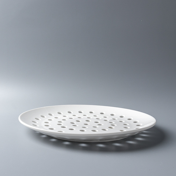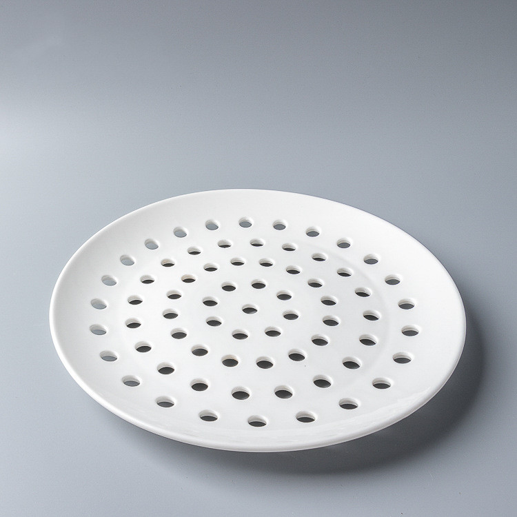 세라믹 만두 판 다공성 김이 판 배수 판 둥근 과일 접시 찐 해산물 찐 생선 접시 찜 조각 둥근 찐 호닝스토어 가기