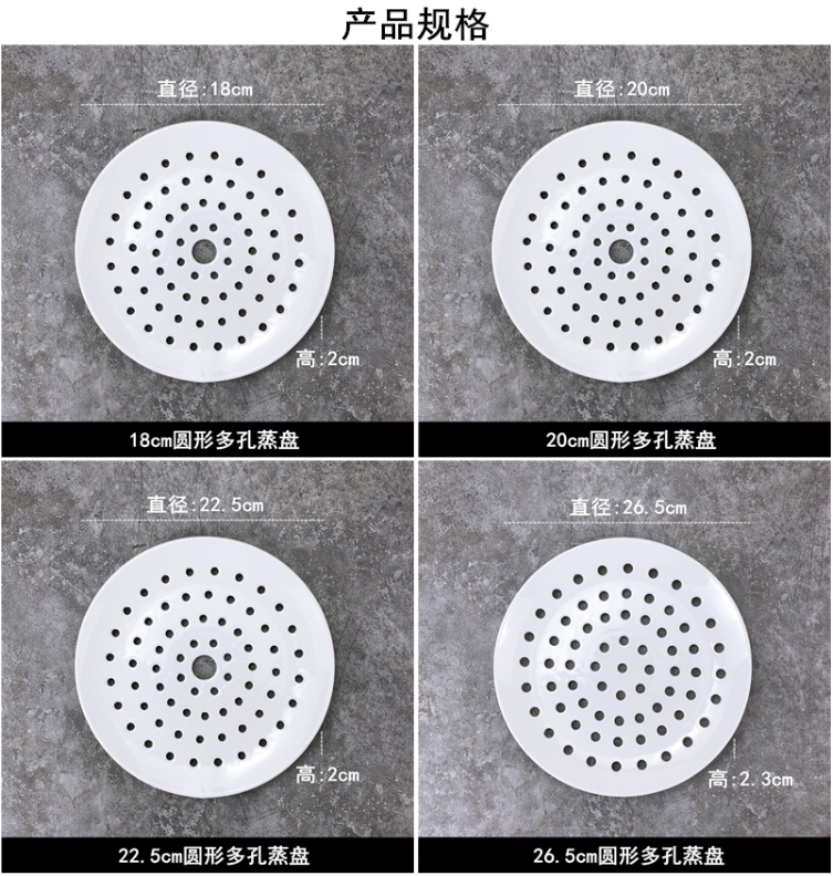 세라믹 만두 판 다공성 김이 판 배수 판 둥근 과일 접시 찐 해산물 찐 생선 접시 찜 조각 둥근 찐 호닝