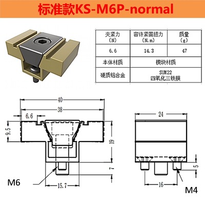 • M6P 알루미늄 측면 고정 클립(나사 포함)