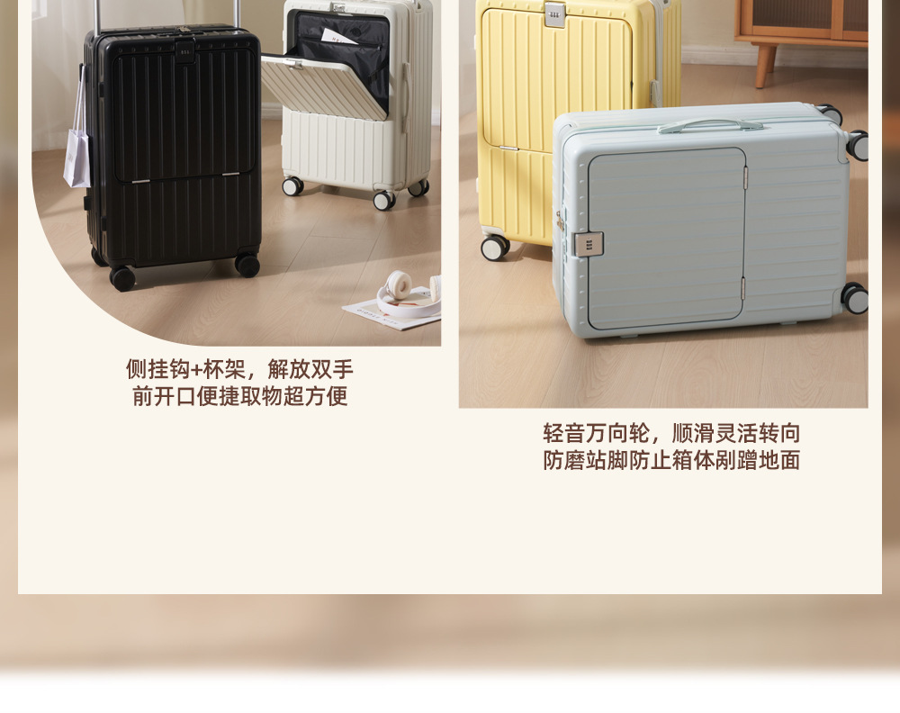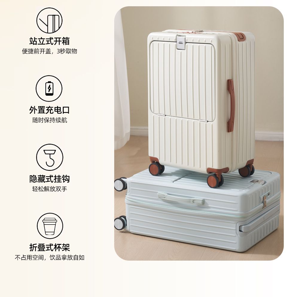 넓은 풀로드 수하물 케이스 전면 개방 대용량 20 인치 탑승 암호 상자 유니버설 휠 학생 여행 트롤리 케이스