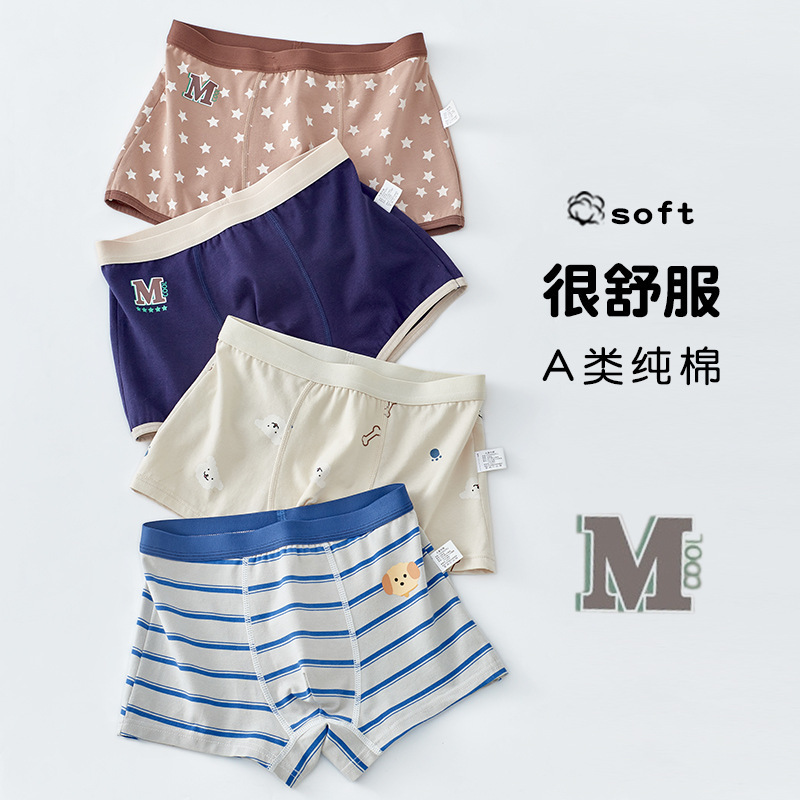 남아용 속옷, 아동용 순면, A형 면, 어린 남아용 복서 브리프, 유아용, 중대형 아동용, 여름, 엉덩이 꼬집지 않음스토어 가기