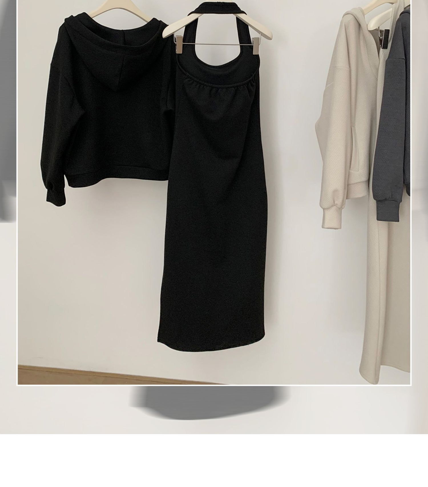 2024 봄과 가을 새로운 한국 스타일 느슨한 후드 스웨터 플러스 사이즈 세트 여성의 섹시한 목 원피스 투피스 유행 세트