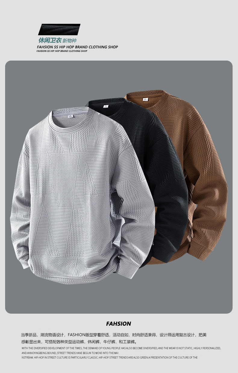 스웨터 남성 봄과 가을 패션 브랜드 자카드 긴팔 티셔츠 플러스 사이즈 느슨한 캐주얼 크로스 보더 크루 넥 풀오버 베이스 셔츠