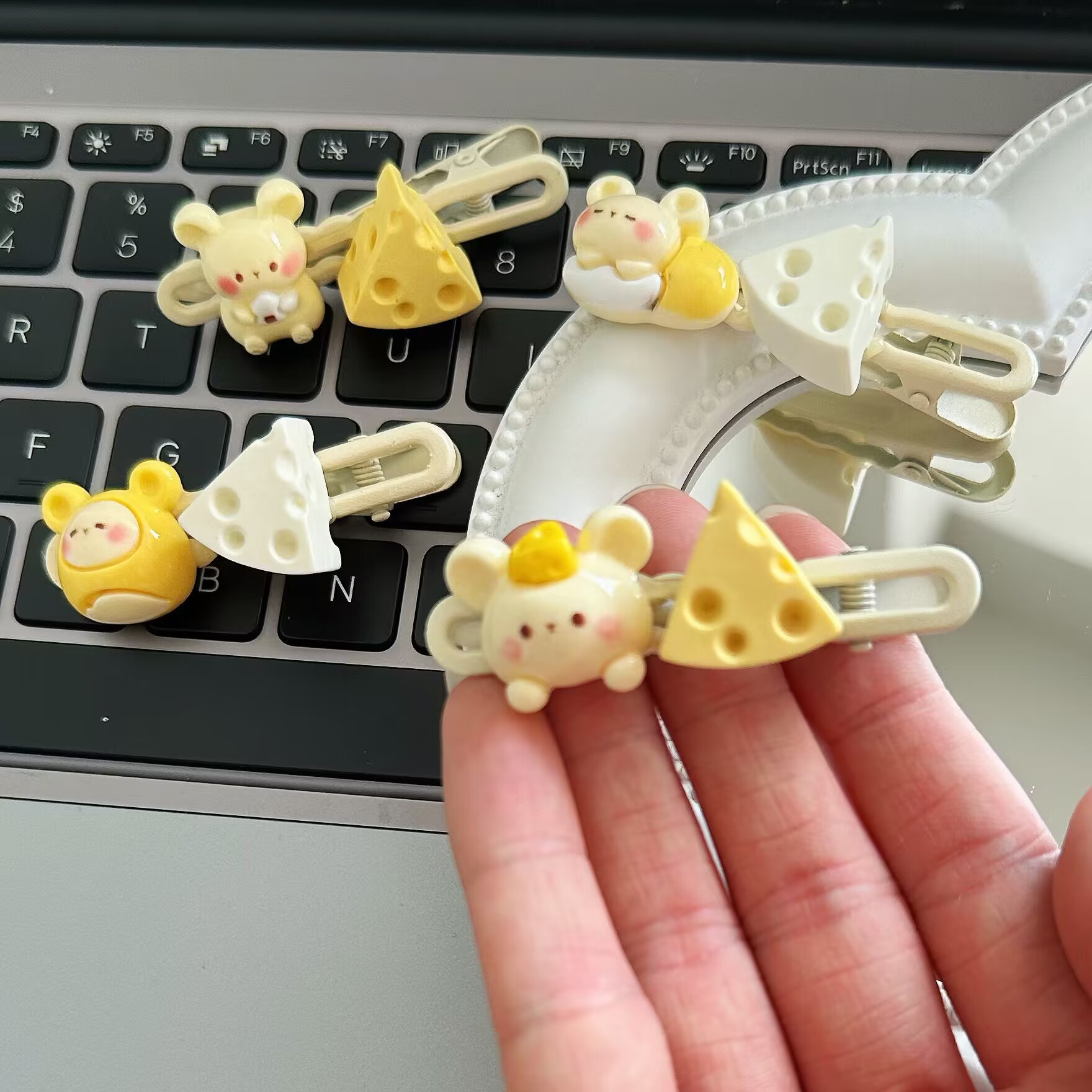 만화 귀여운 우유 노란색 치즈 헤어 클립 이마 클립 앞머리 클립 달콤한 신선한 소녀 하트 사이드 클립