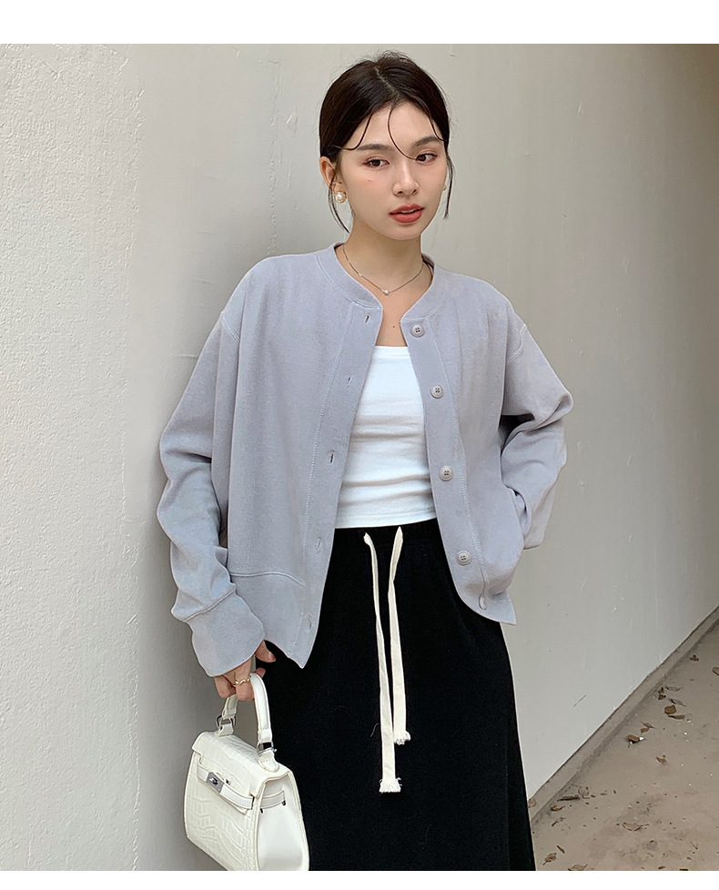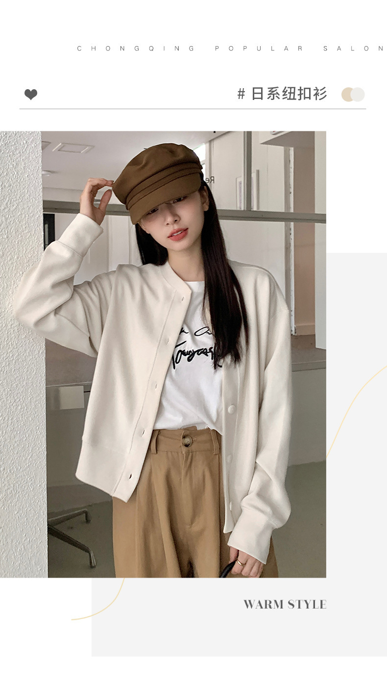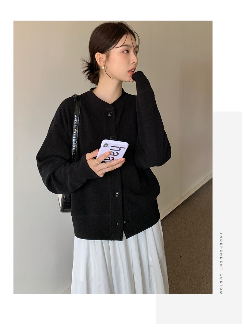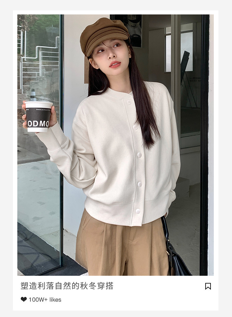 한국식 샤넬 스타일 가을과 겨울 카디건 단색 라운드 넥 긴팔 스웨터 올 매치 야구 세트 코트 여자 탑스토어 가기