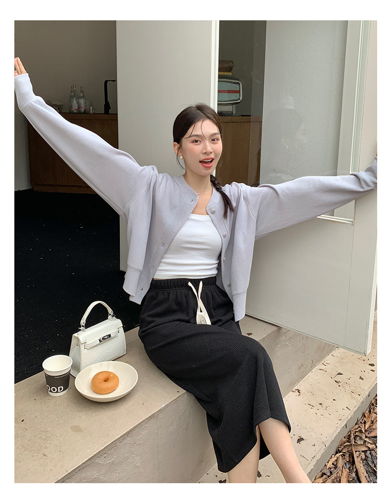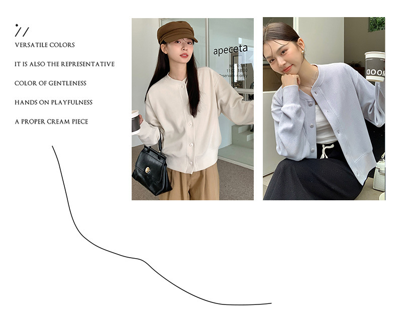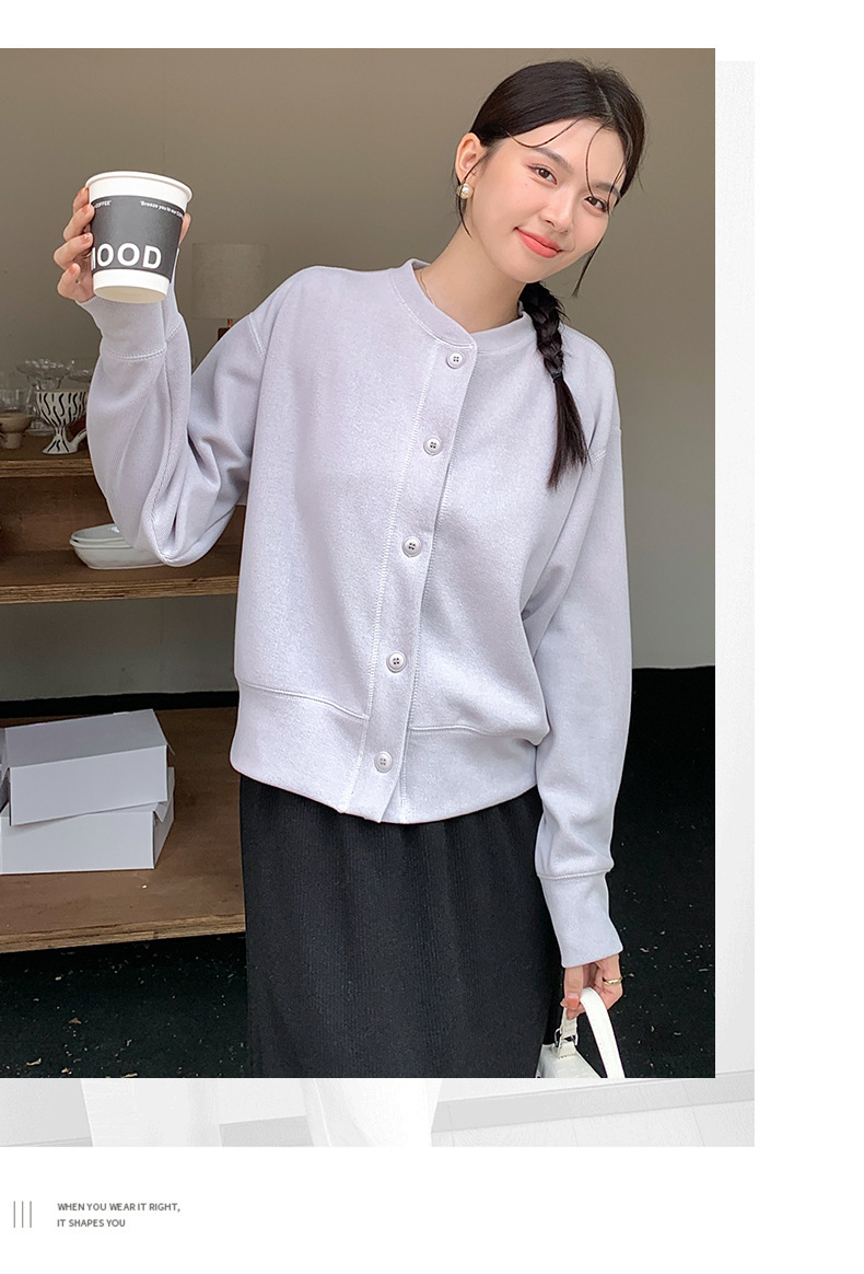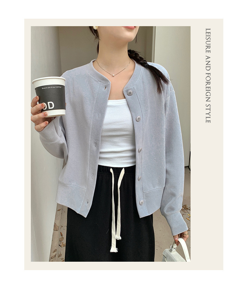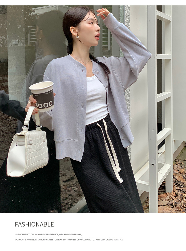 한국식 샤넬 스타일 가을과 겨울 카디건 단색 라운드 넥 긴팔 스웨터 올 매치 야구 세트 코트 여자 탑스토어 가기