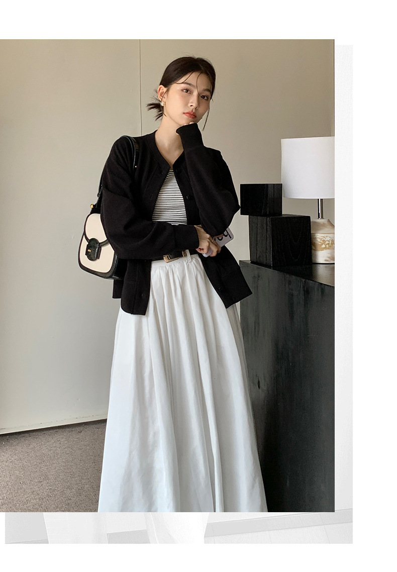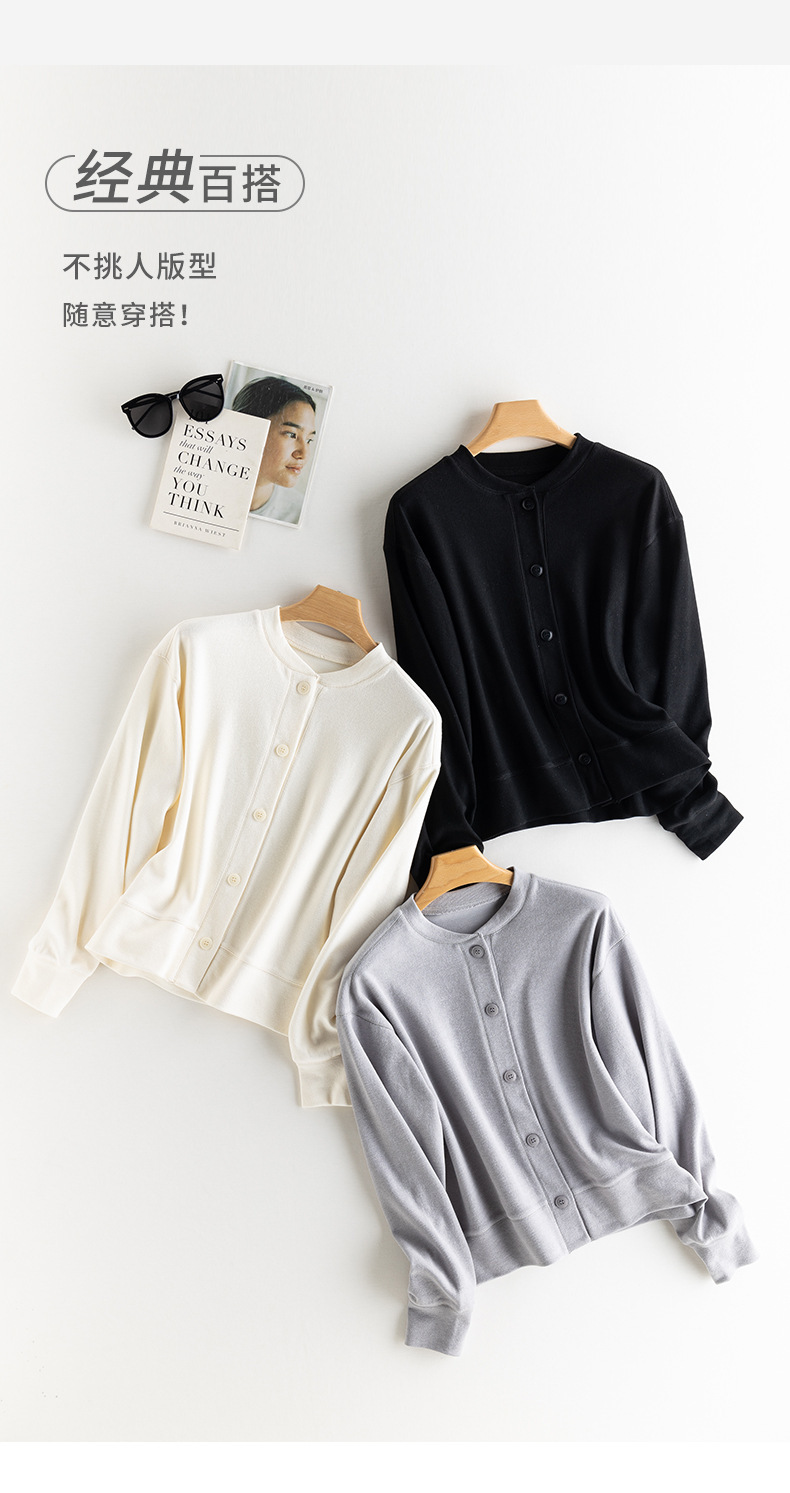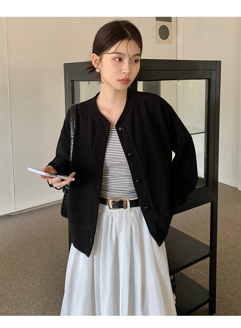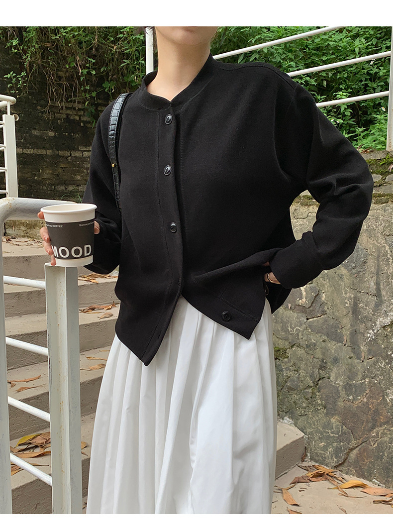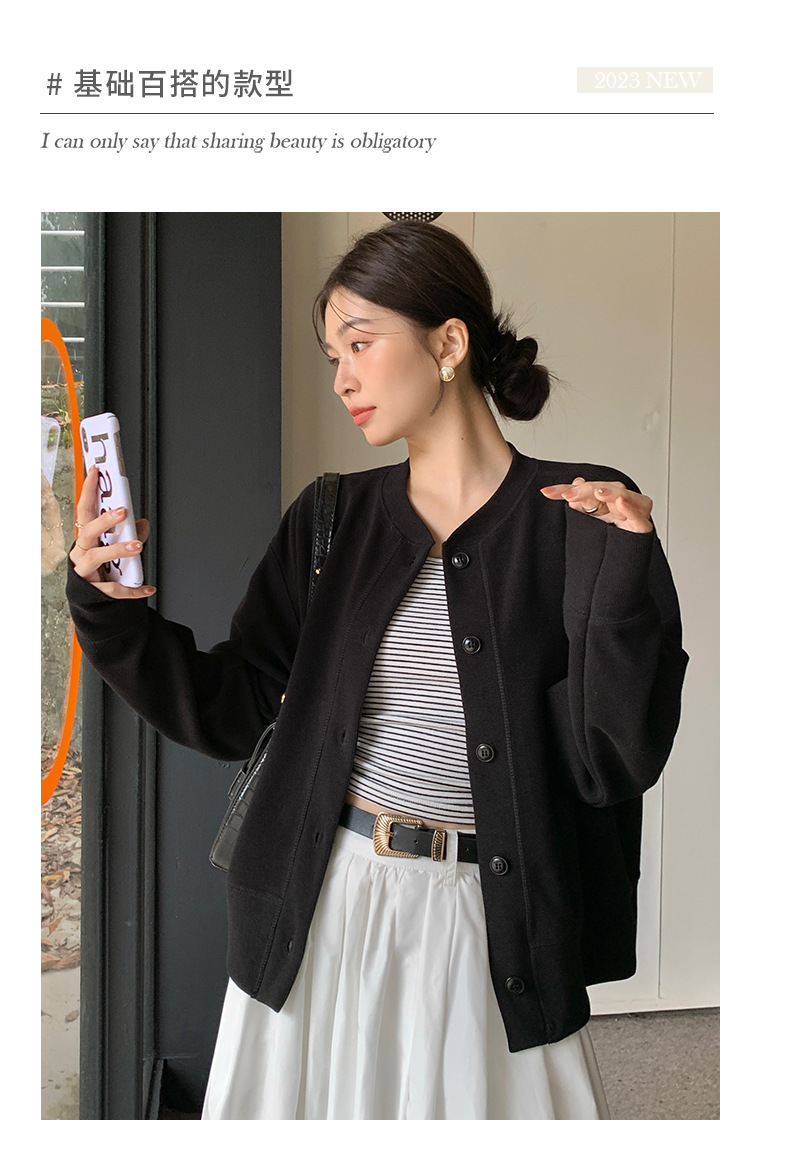 한국식 샤넬 스타일 가을과 겨울 카디건 단색 라운드 넥 긴팔 스웨터 올 매치 야구 세트 코트 여자 탑