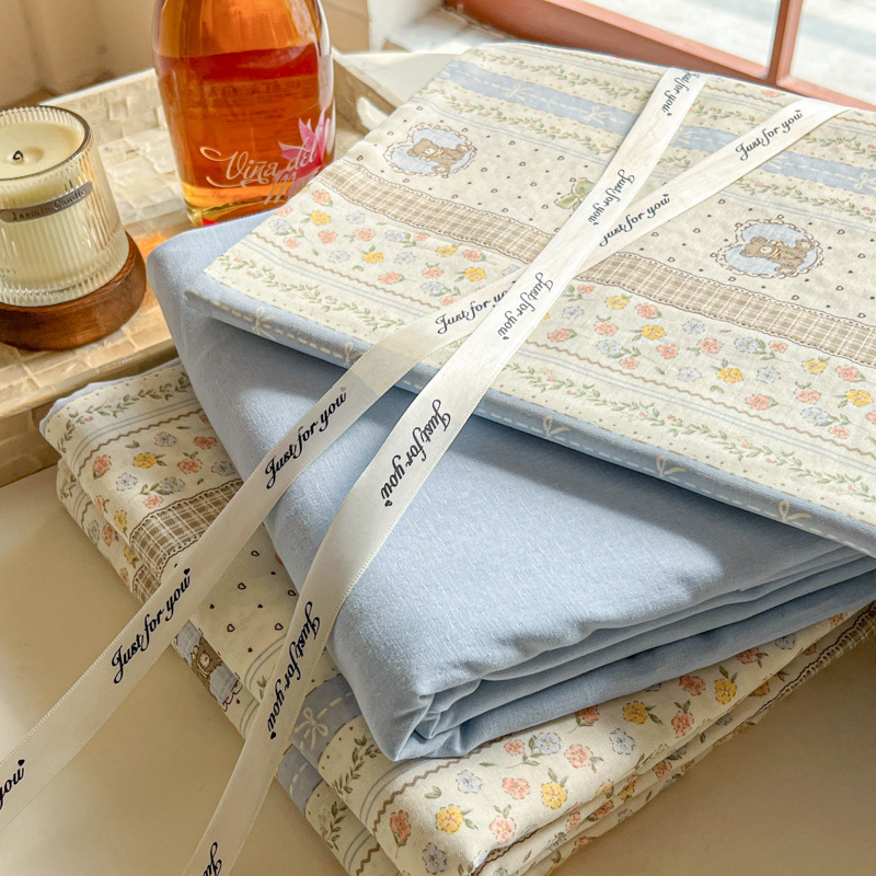 작고 신선하고 부드러운 더블 레이어 원사 퀼트 커버 4 피스 퀼트 커버 어머니와 유아 등급 코튼 원사 클래스 A 3 피스 침구스토어 가기