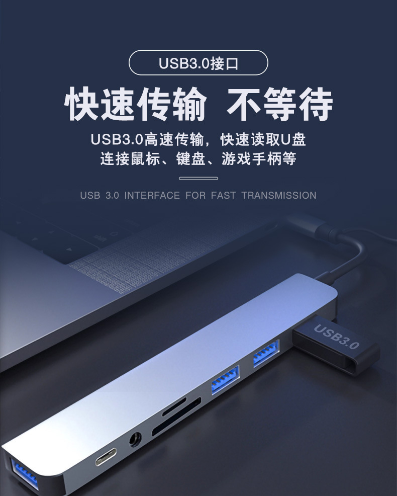 확장 도크 USB 인터페이스 유형 허브 컴퓨터 태블릿 3.5mm 오디오 어댑터 허브 고속 전송스토어 가기