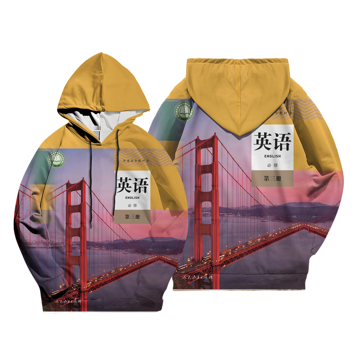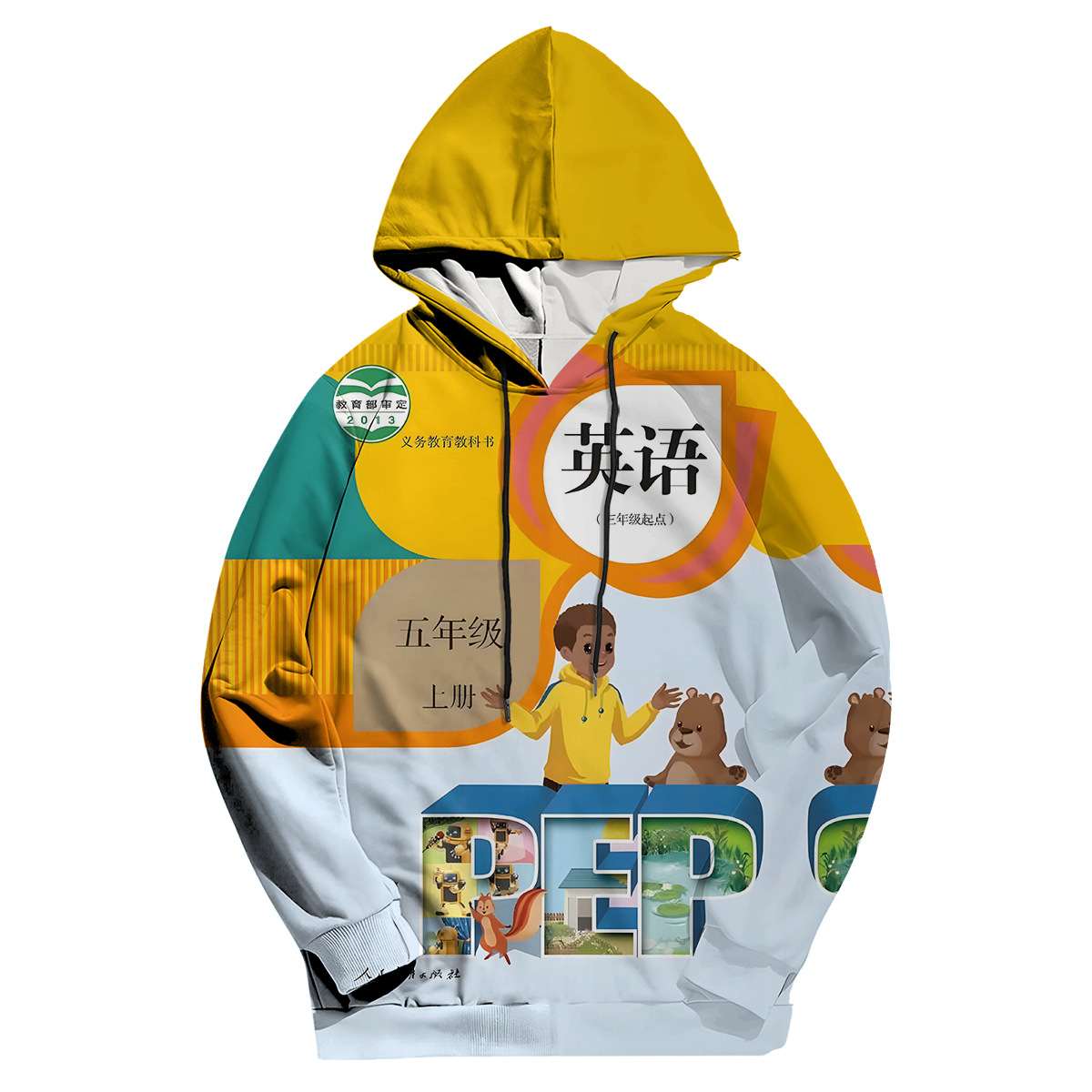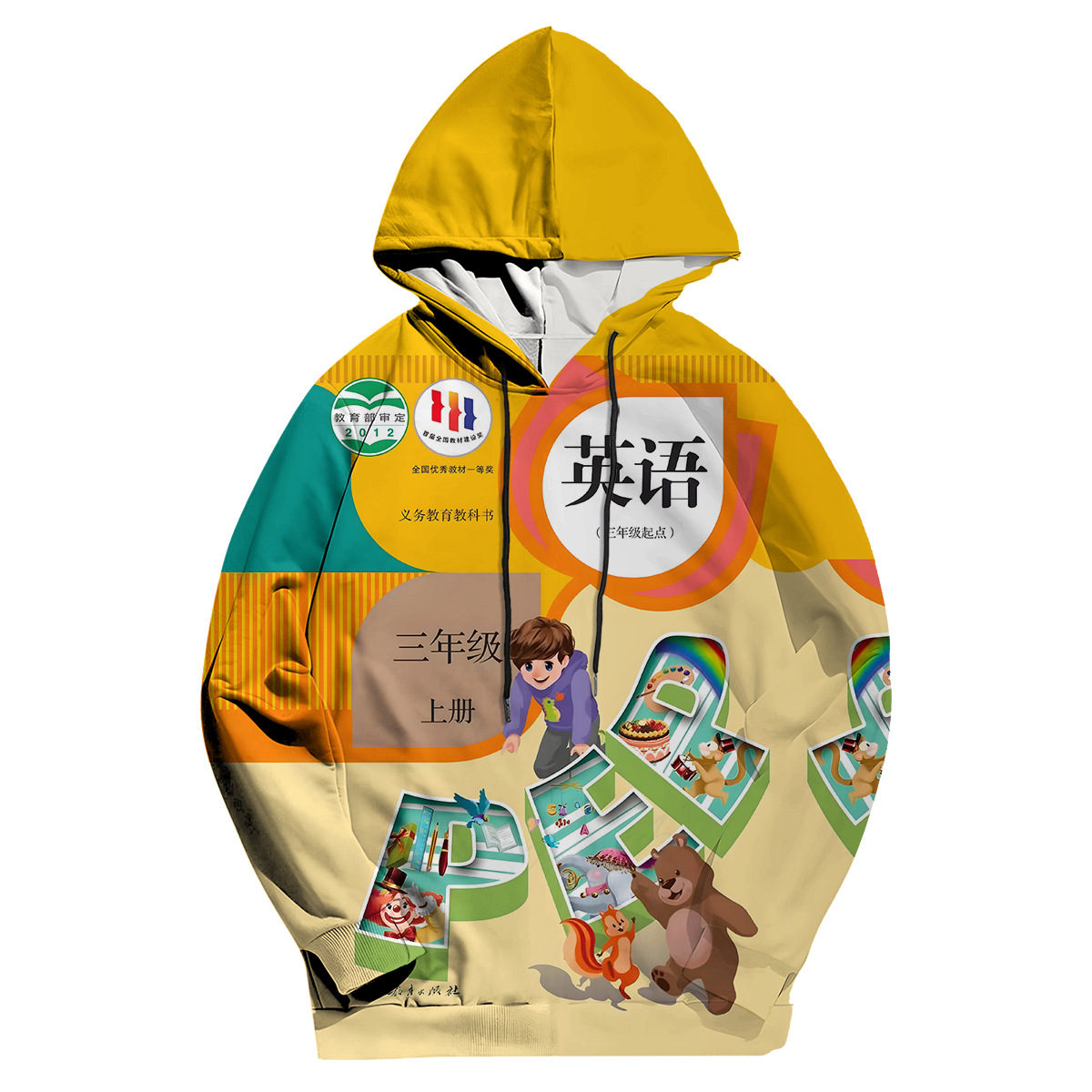 2024 년 가을 새로운 남성 캐주얼 후드 스웨트 초등학교 영어 교과서 표지 3D 디지털 인쇄 땀스토어 가기