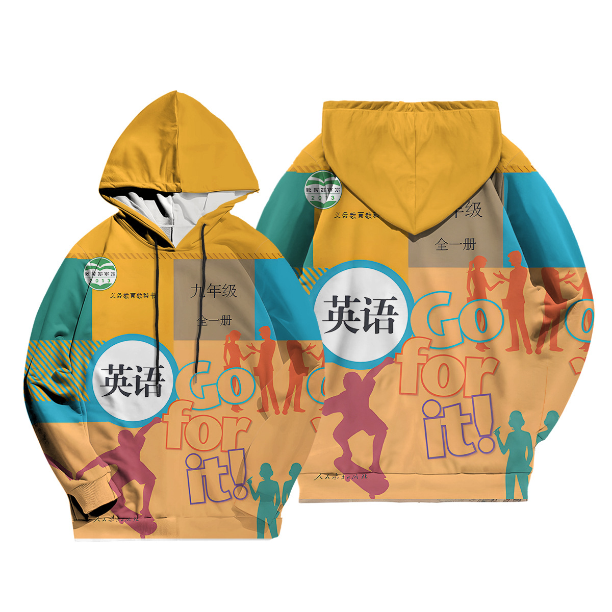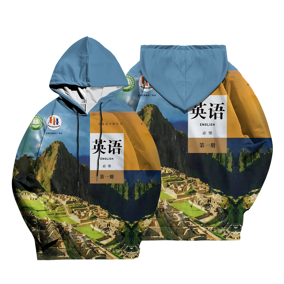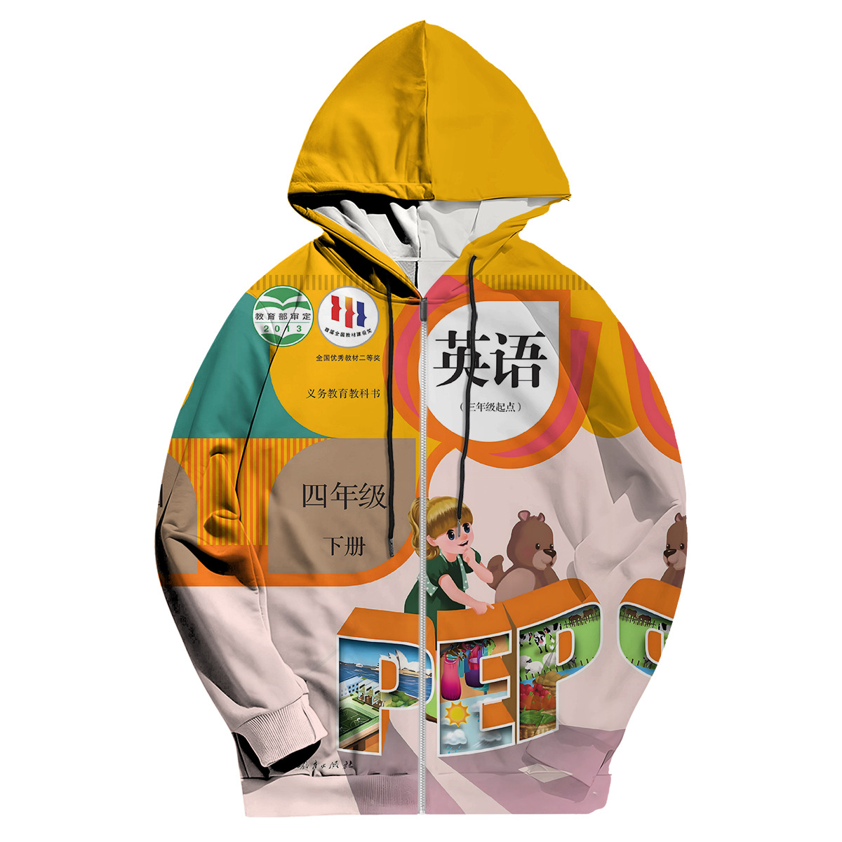 2024 년 가을 새로운 남성 캐주얼 후드 스웨트 초등학교 영어 교과서 표지 3D 디지털 인쇄 땀스토어 가기