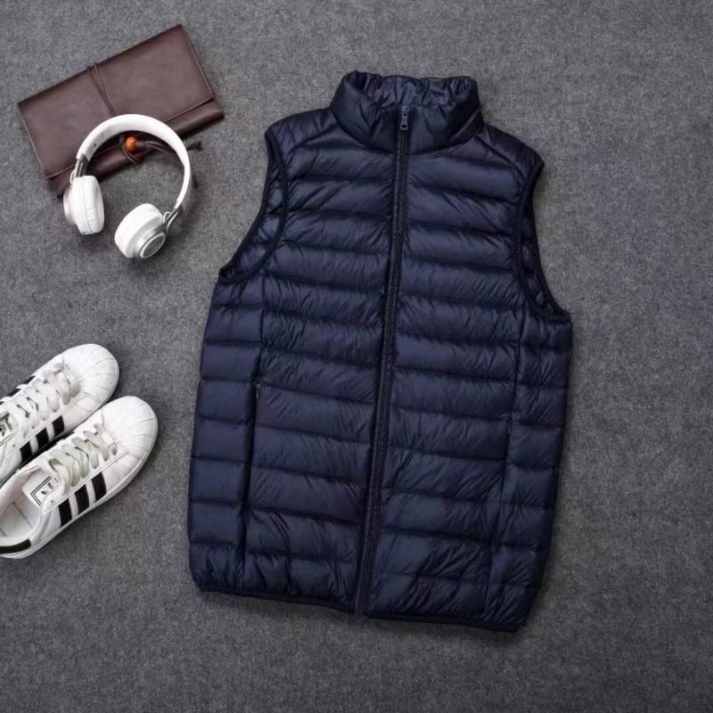 남자 수직 칼라 조끼 블랙 다운 코튼 패딩 재킷 조끼 남자 겨울 경량 러시 워크 자켓 라이너 젊은 사람들의 돼지 고기 볶음 면화스토어 가기