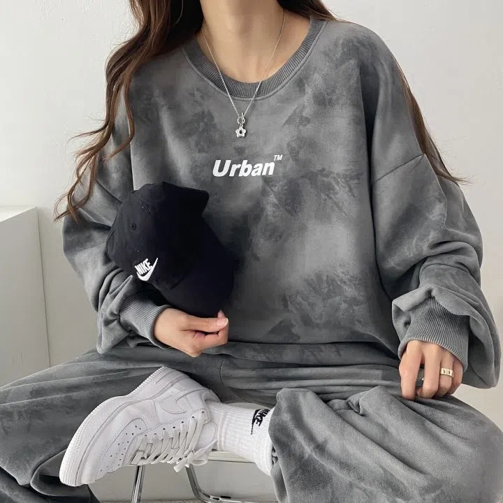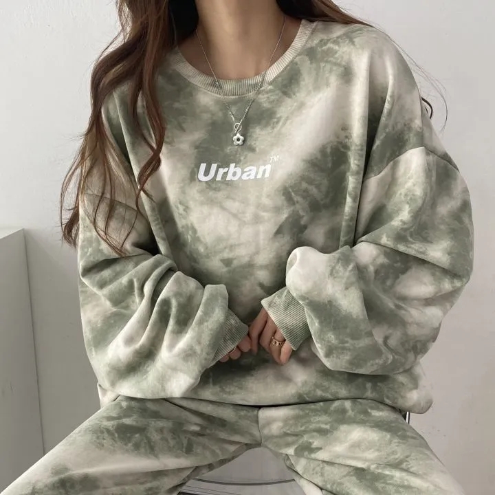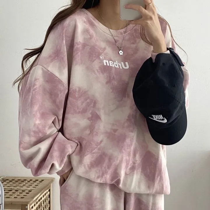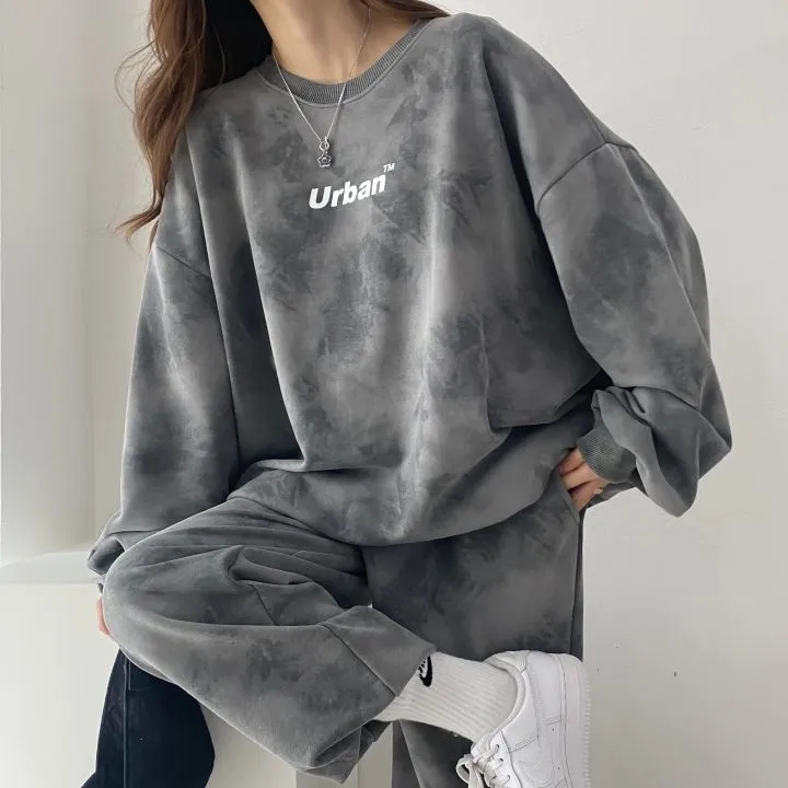 스포츠 세트 여성의 가을과 겨울 2023 새로운 타이 염료 느슨한 땀 패션 캐주얼 투피스 러닝 Heng Ming스토어 가기
