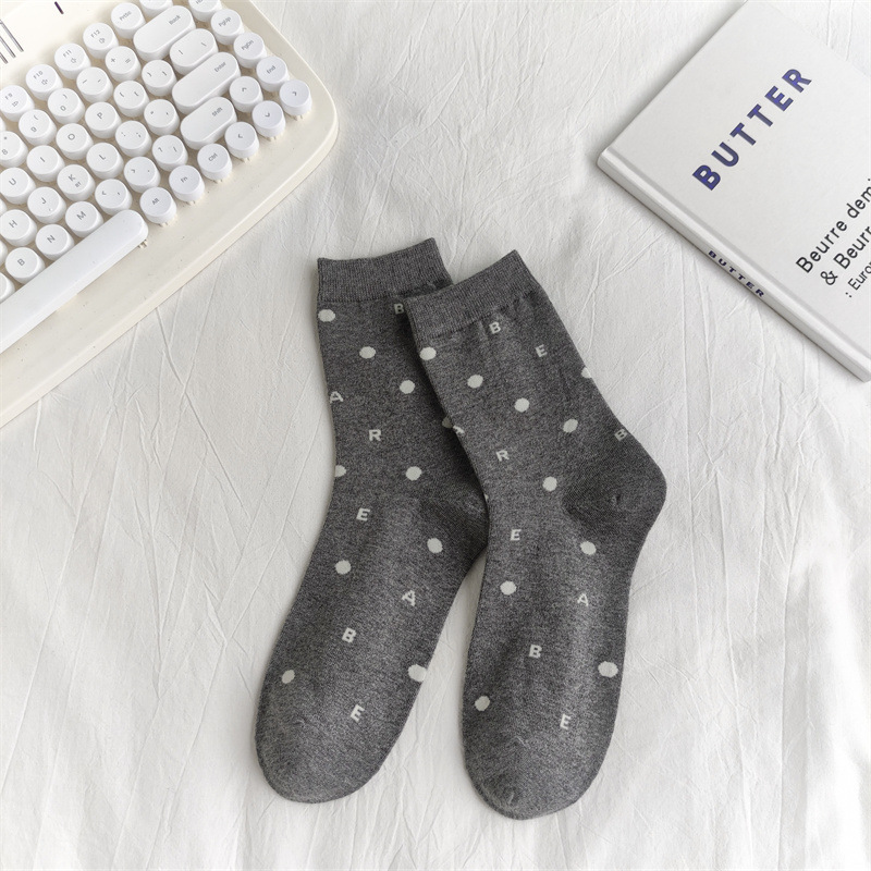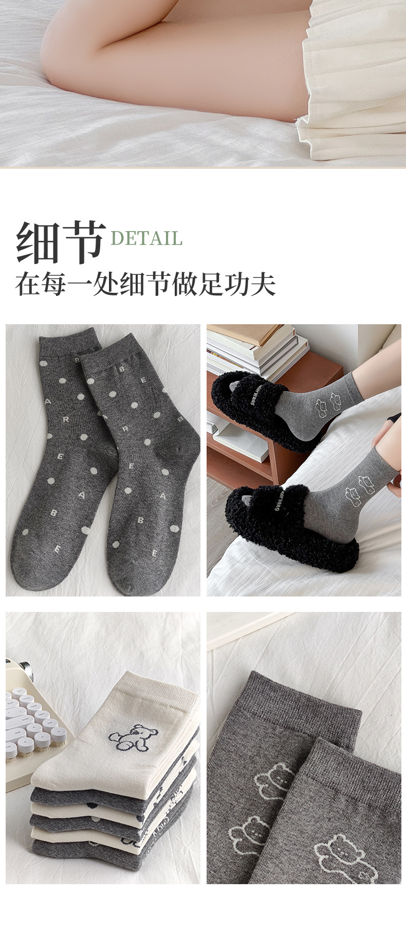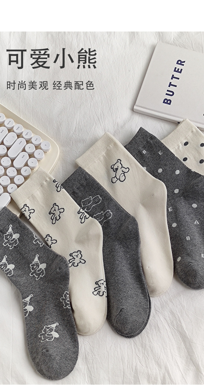 가을과 겨울 새로운면 여성 양말 귀여운 만화 흑백 회색 곰 캐주얼 양말면 양말 간단한 학술 스타일스토어 가기
