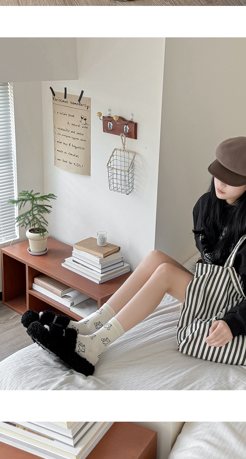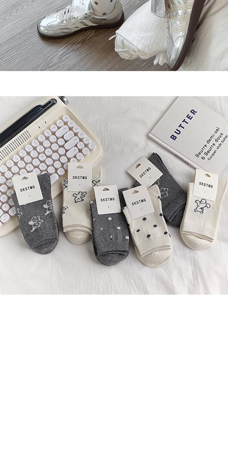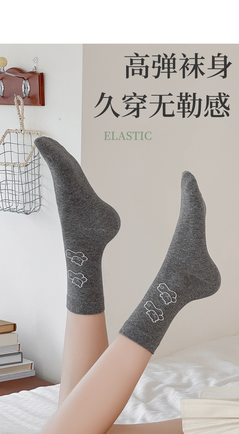 가을과 겨울 새로운면 여성 양말 귀여운 만화 흑백 회색 곰 캐주얼 양말면 양말 간단한 학술 스타일스토어 가기