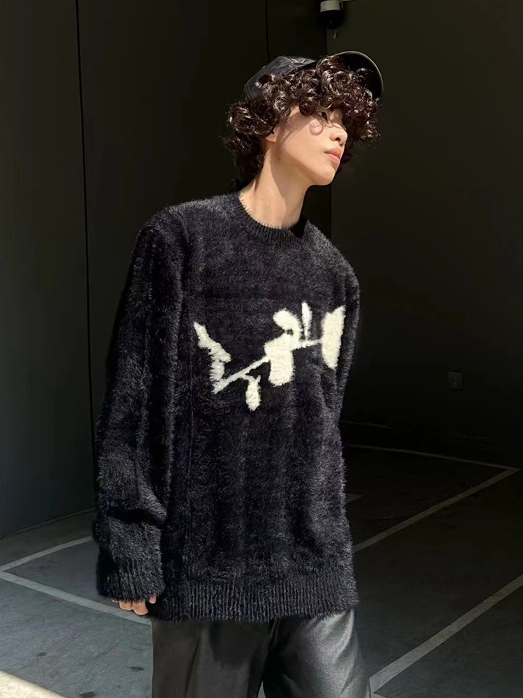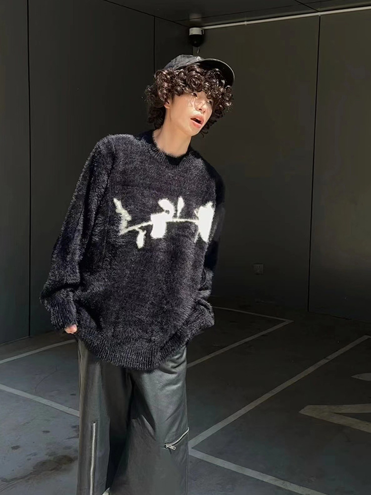 미국 루스 레트로 겨울 기모 대형 로즈 틈새 커플 캐주얼 니트 셔츠 캐주얼 스웨터