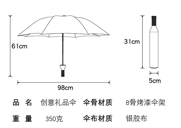 창조적 인 패션 장미 꽃병 우산 부티크 빨간 맥주 병 우산 와인 병 접이식 인쇄 로고 광고 우산 도매
