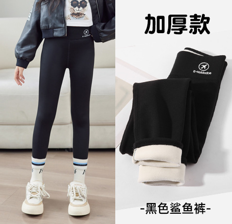 소녀 2024 가을 겨울 새 상어 바지 큰 어린이 한국 스타일 기모 두꺼운 레깅스 외부 착용 바비 바지