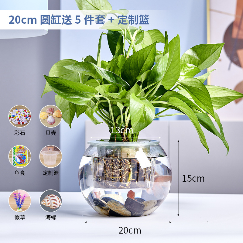 사무실 작은 물고기 탱크 두꺼운 투명 유리 거북이 탱크 거실 가정용 데스크탑 라운드 미니 골드 교수형 비문스토어 가기