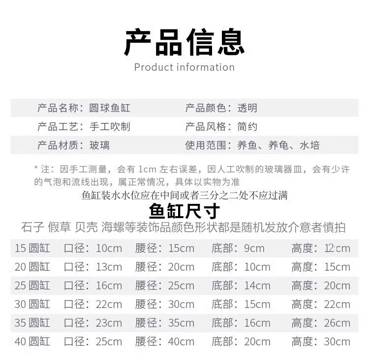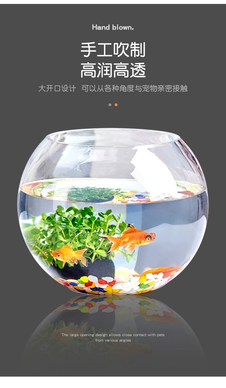 사무실 작은 물고기 탱크 두꺼운 투명 유리 거북이 탱크 거실 가정용 데스크탑 라운드 미니 골드 교수형 비문
