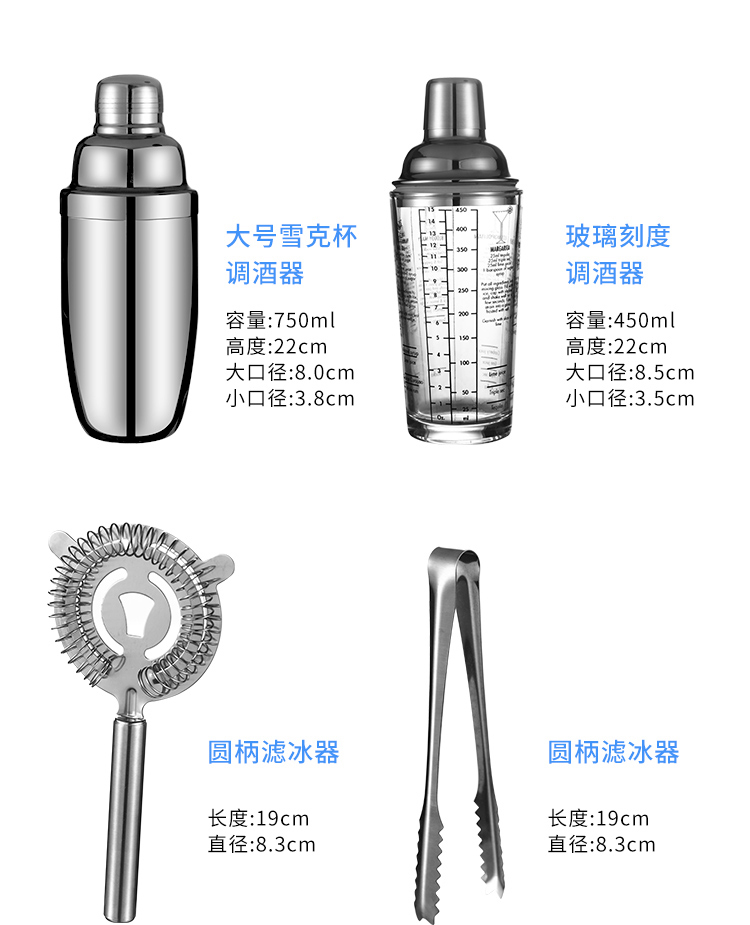 스테인레스 스틸 칵테일 셰이커 Shuck 유리 손 주전자 칵테일 스타터 바텐더 도구 세트 전문 셰이커 유리 교수형 비문