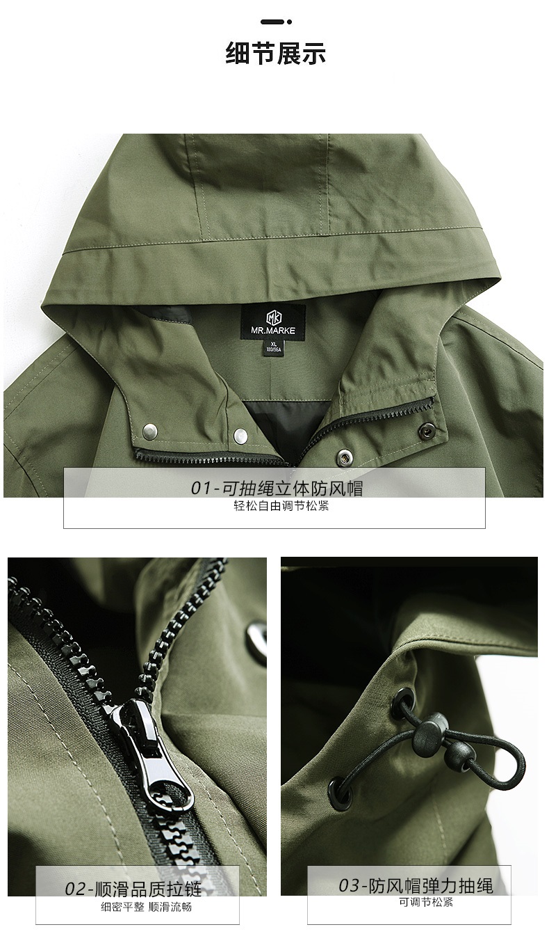 후드 재킷 남자의 야외 방수 방풍 봄 및 가을 스포츠 러시 옷 느슨한 캐주얼 윈드 브레이커 플러스 사이즈 클립 Heng Ming