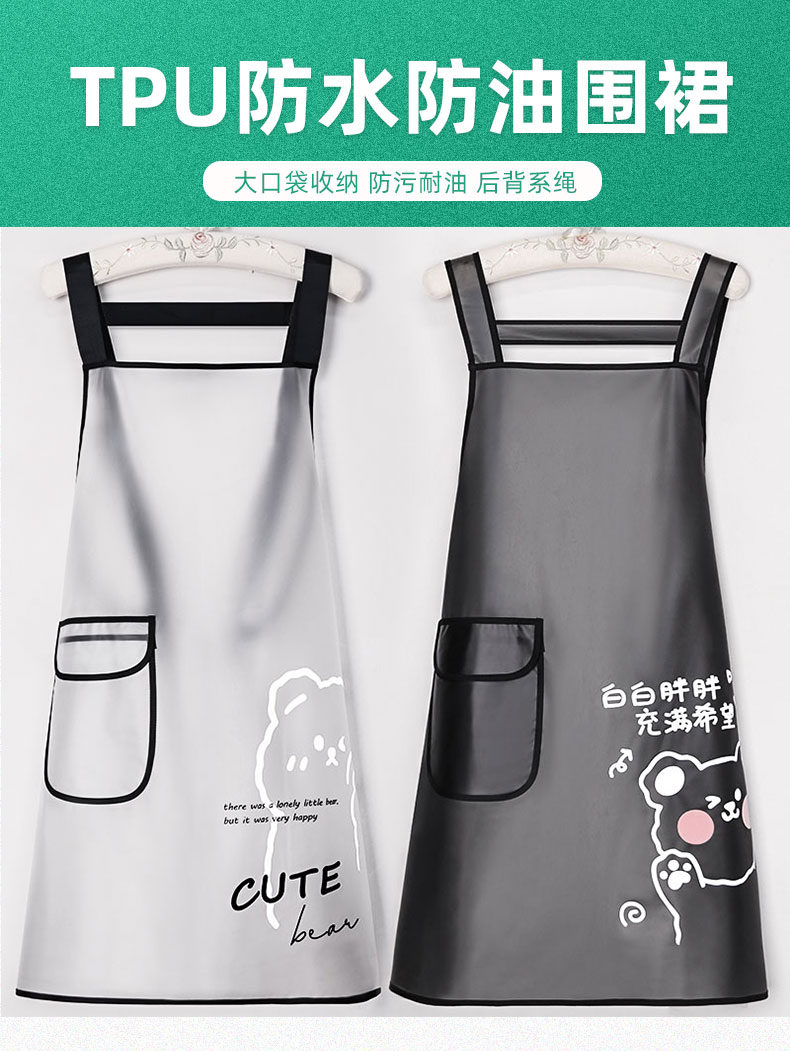 투명한 앞치마 여성용 가정용 주방 방수 및 내유성 케이터링 요리 허리 2024 새로운 부드러운 가죽 노동자 Heng Ming스토어 가기
