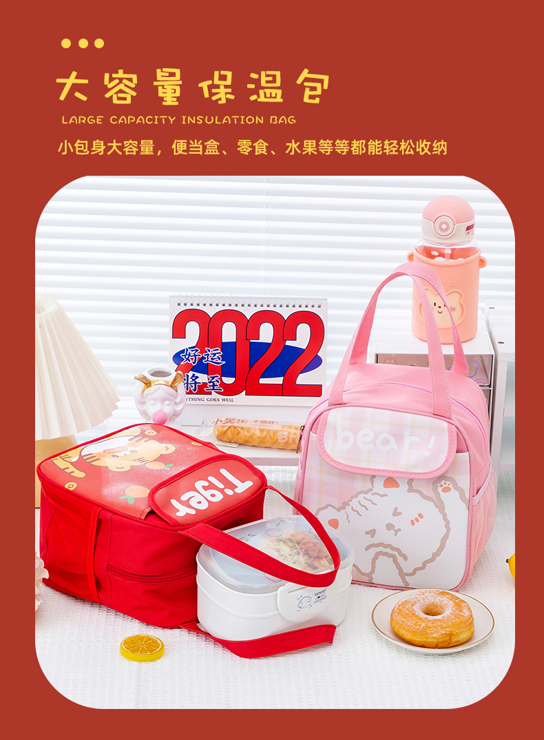 도시락 가방 어린이 및 초등학생 식사 가방 휴대용 점심 가방 쌀 가방 캔버스 가방 아침 식사 가방 Baohonming