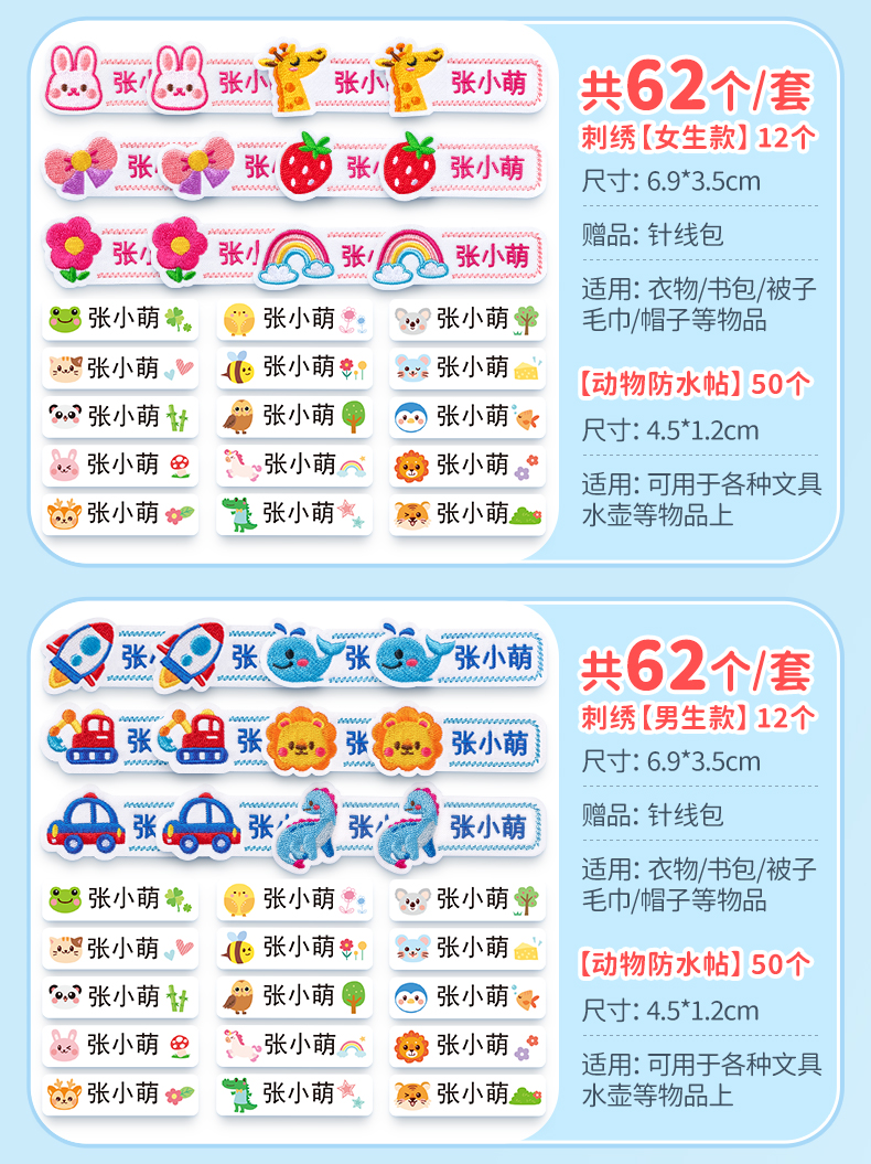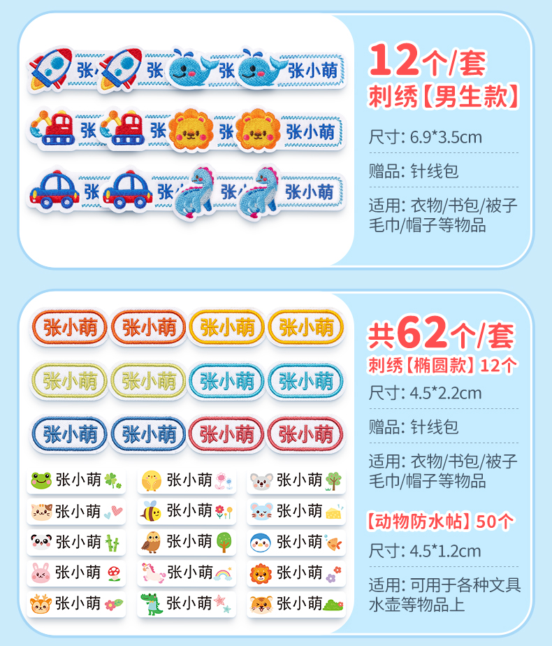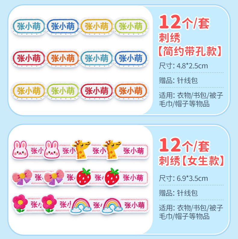 이름 스티커 자수 바느질 가능한 유치원 이름 라벨 옷 학교 유니폼 스티커 학교 Heng Ming스토어 가기