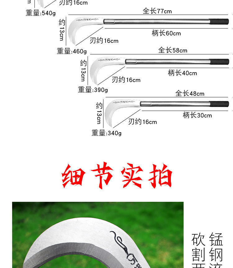 야외 낫 잔디 깎기 높은 망간 강철 나무 깎기 만도 농업 간판 도마 가지와 산 스테인리스 스틸 낫 연마 비문