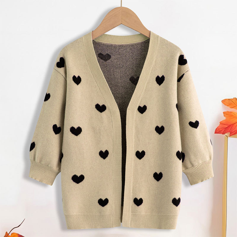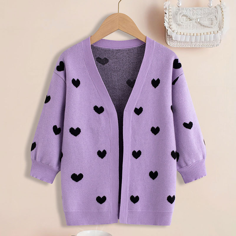 2024 새로운 봄과 가을 유럽과 미국 소녀 아기 니트 숄 코트 어린이 스웨터 사랑 카디건 패션 스타일