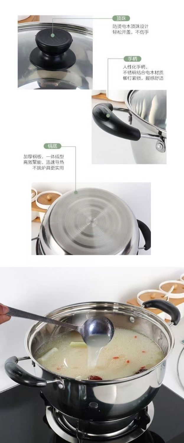 스테인레스 스틸 16/18/20/22/24/26 두꺼운 수프 냄비 스튜 수프 냄비 우유 냄비 뜨거운 냄비 기선 유도 쿠커 호닝 밍스토어 가기