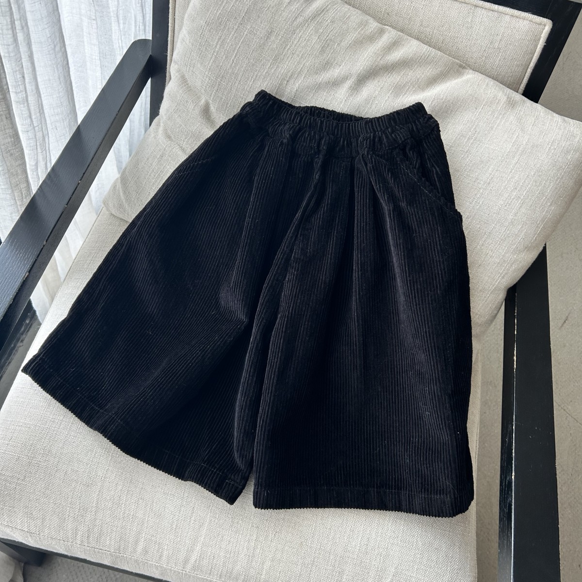 • 블랙 코듀로이 크롭 팬츠