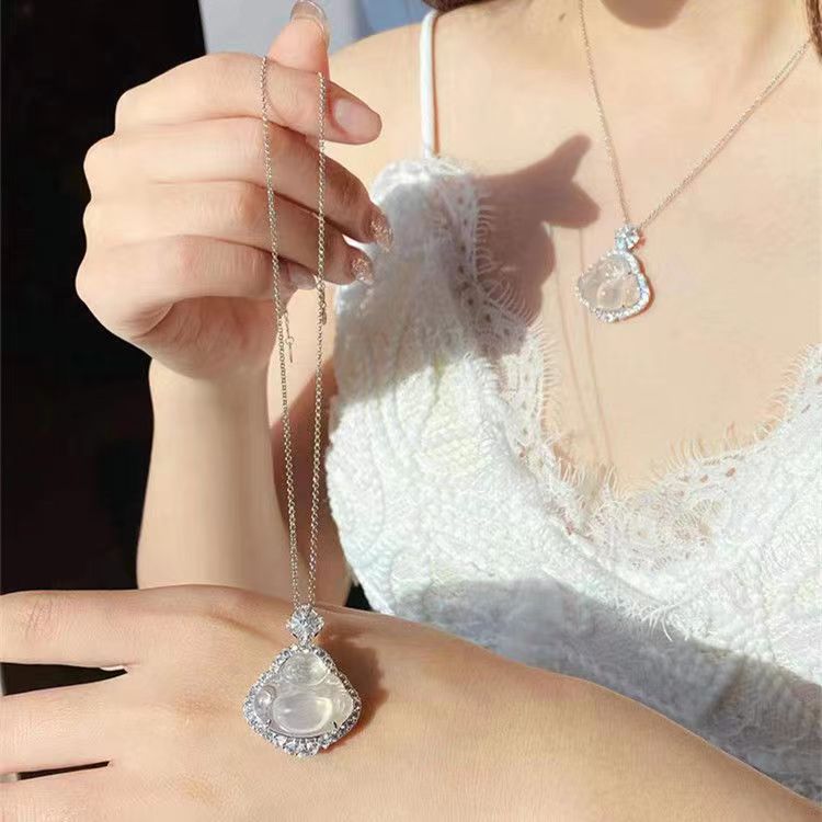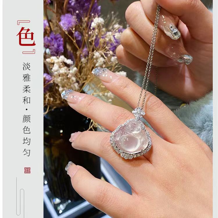 자연적인 얼음 높은 얼음 백색 석조 부처님 펜던트 핑 여성의 날 선물 교수형 비문과 비교