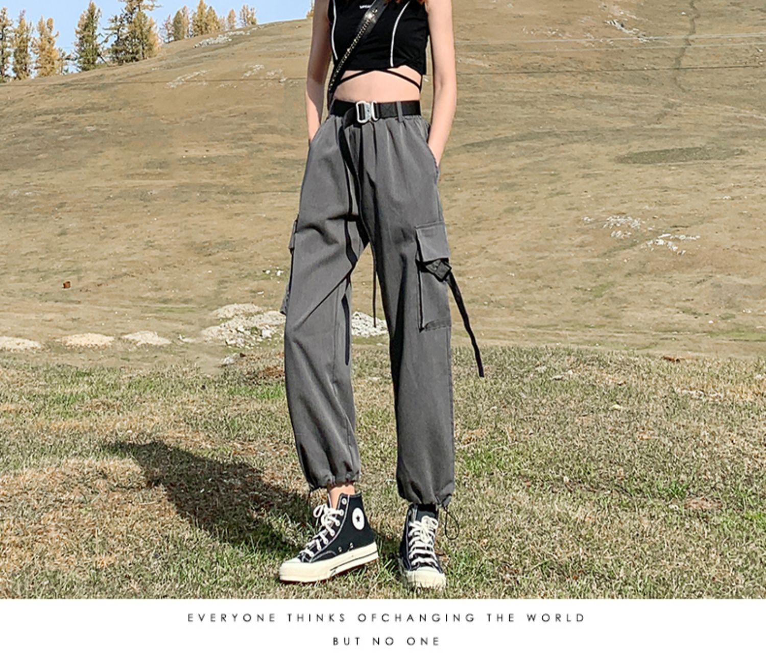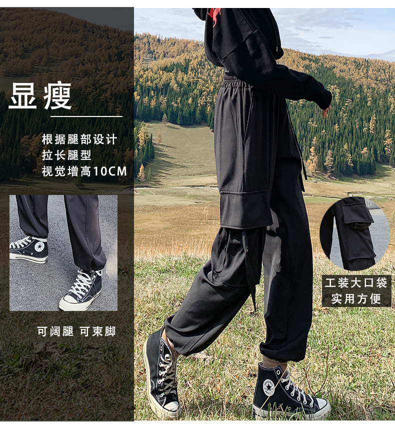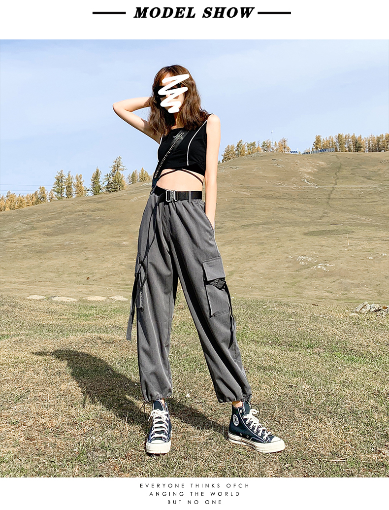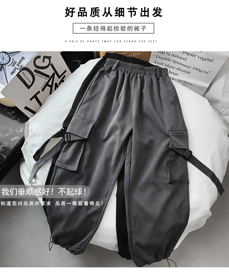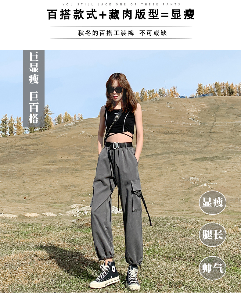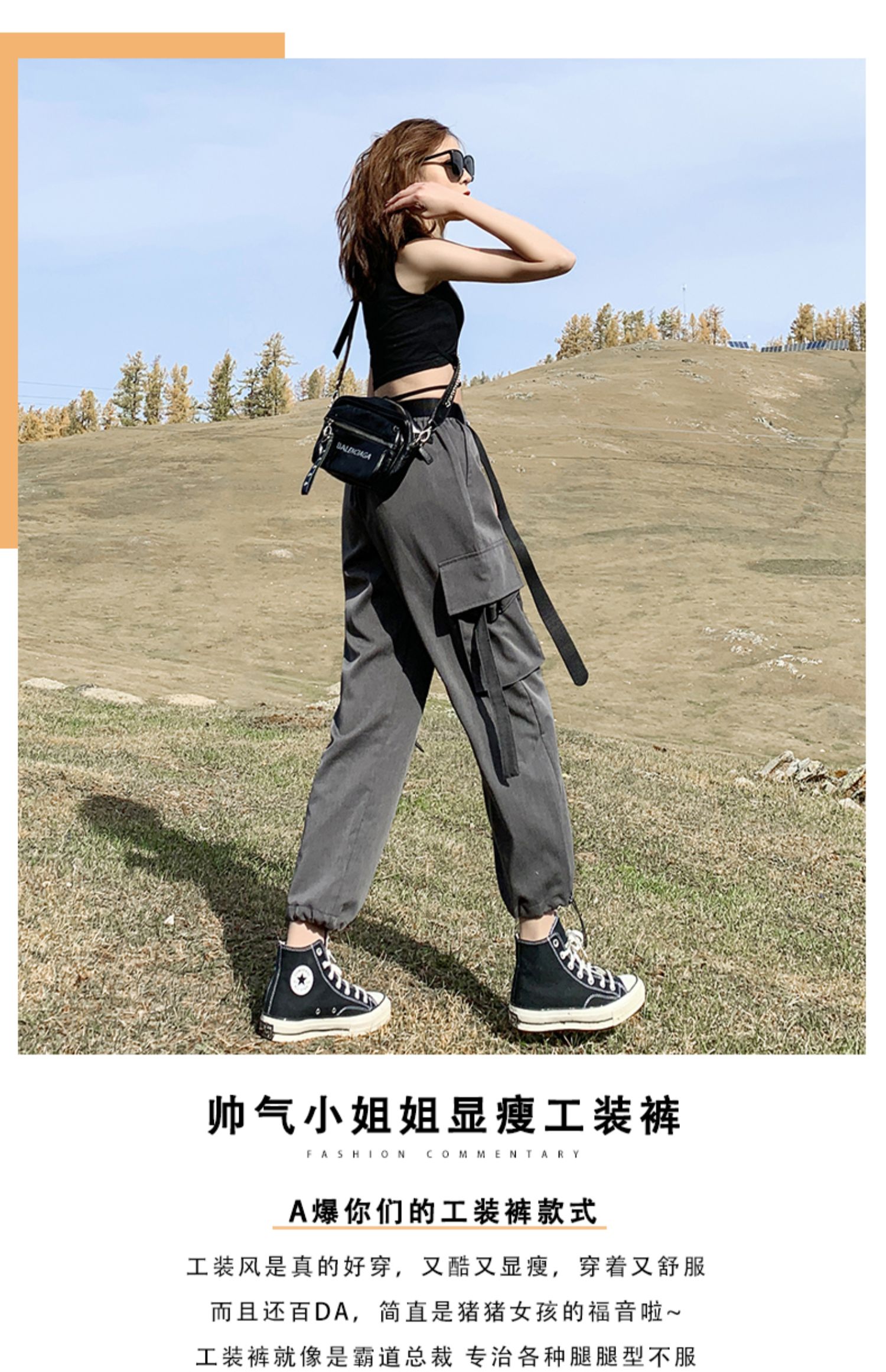 法式工装裤女宽松春秋季薄款束脚裤女ins高腰直筒运动休闲九珩铭