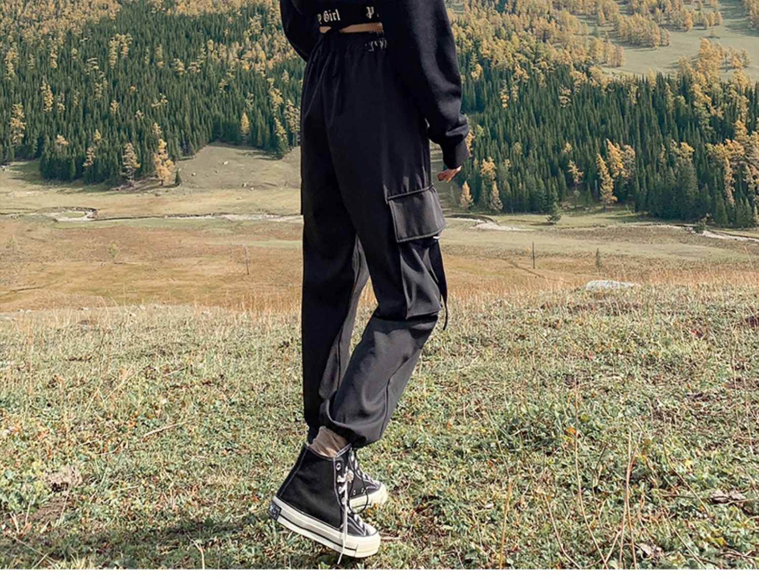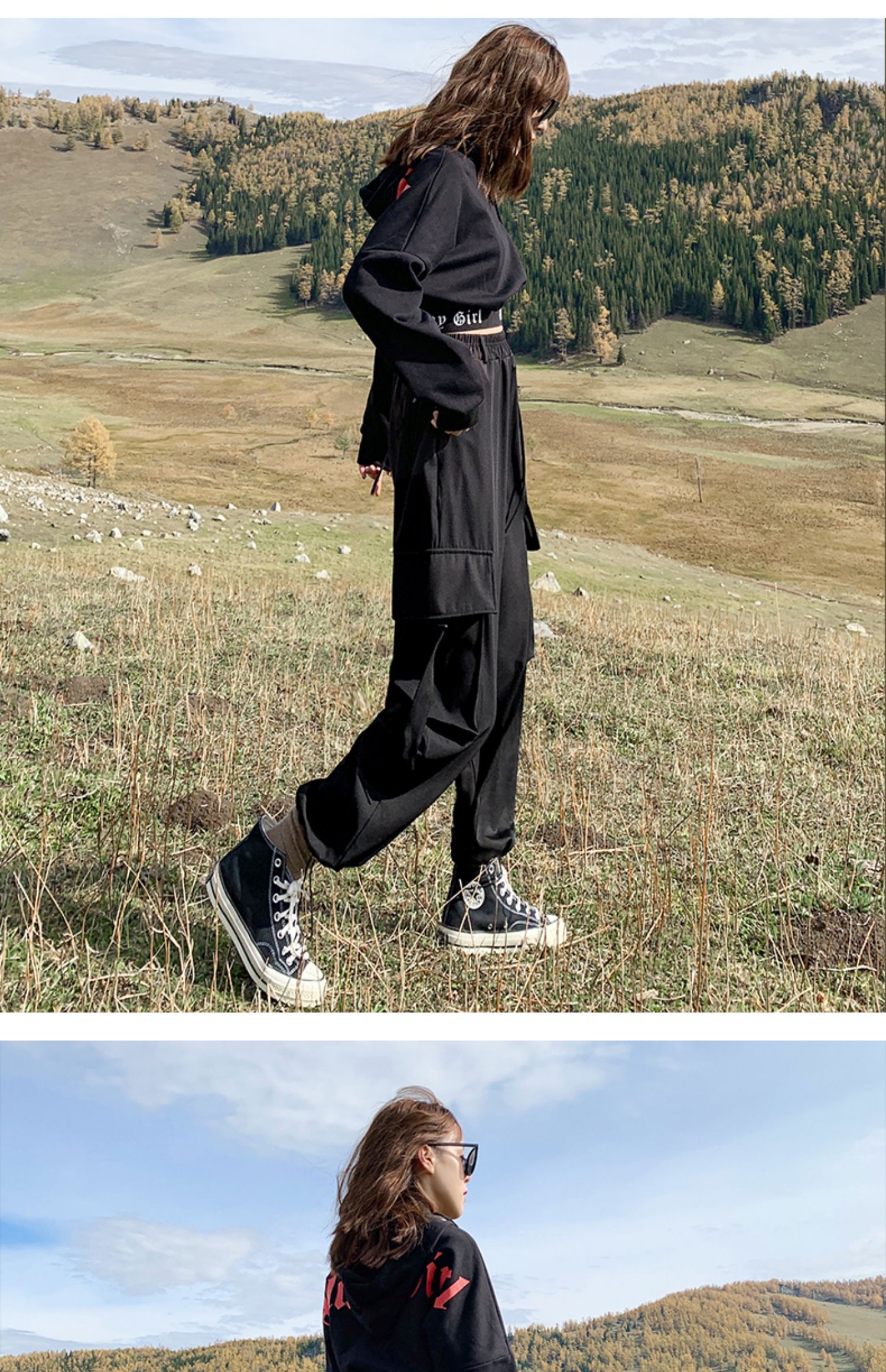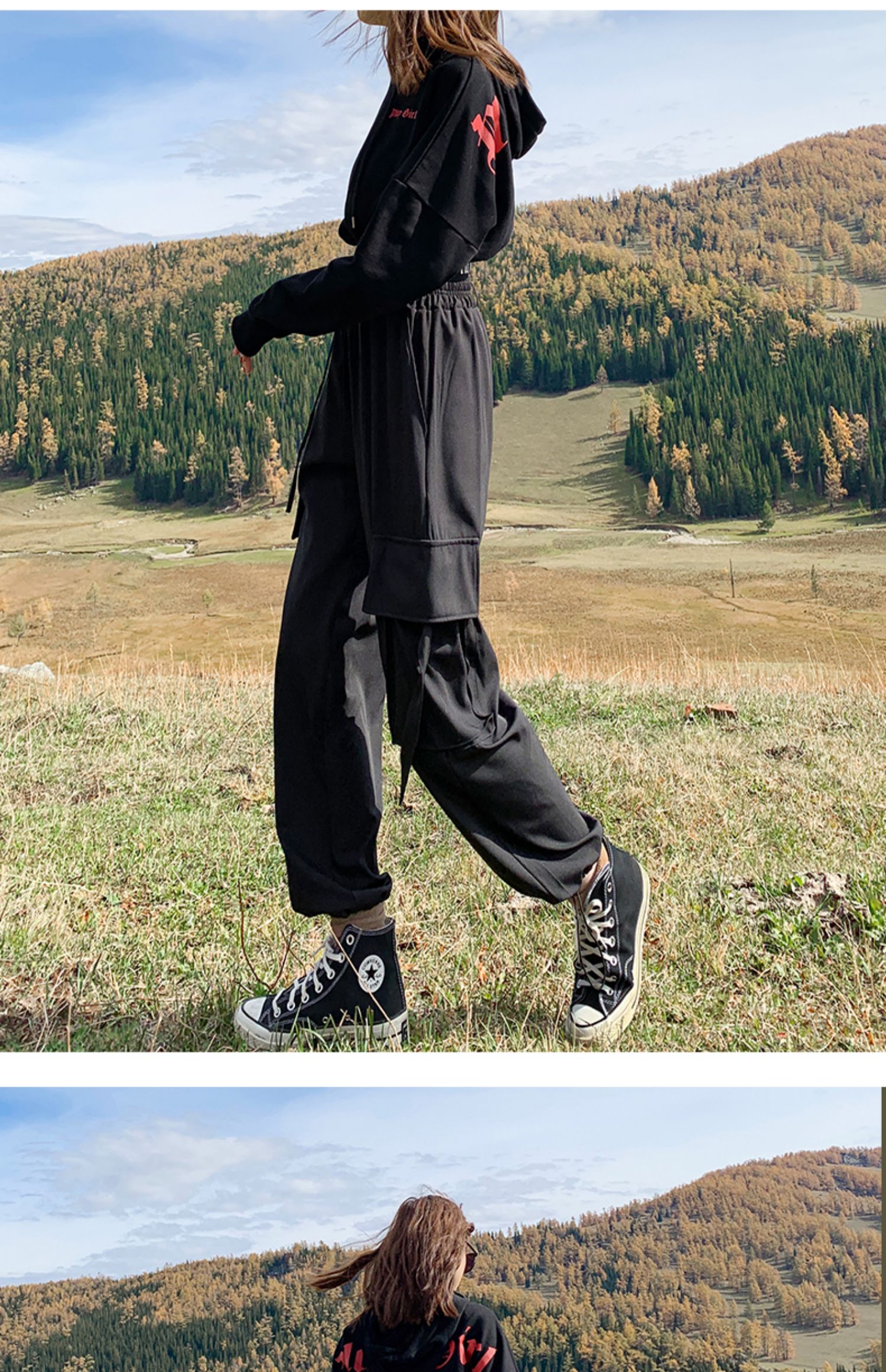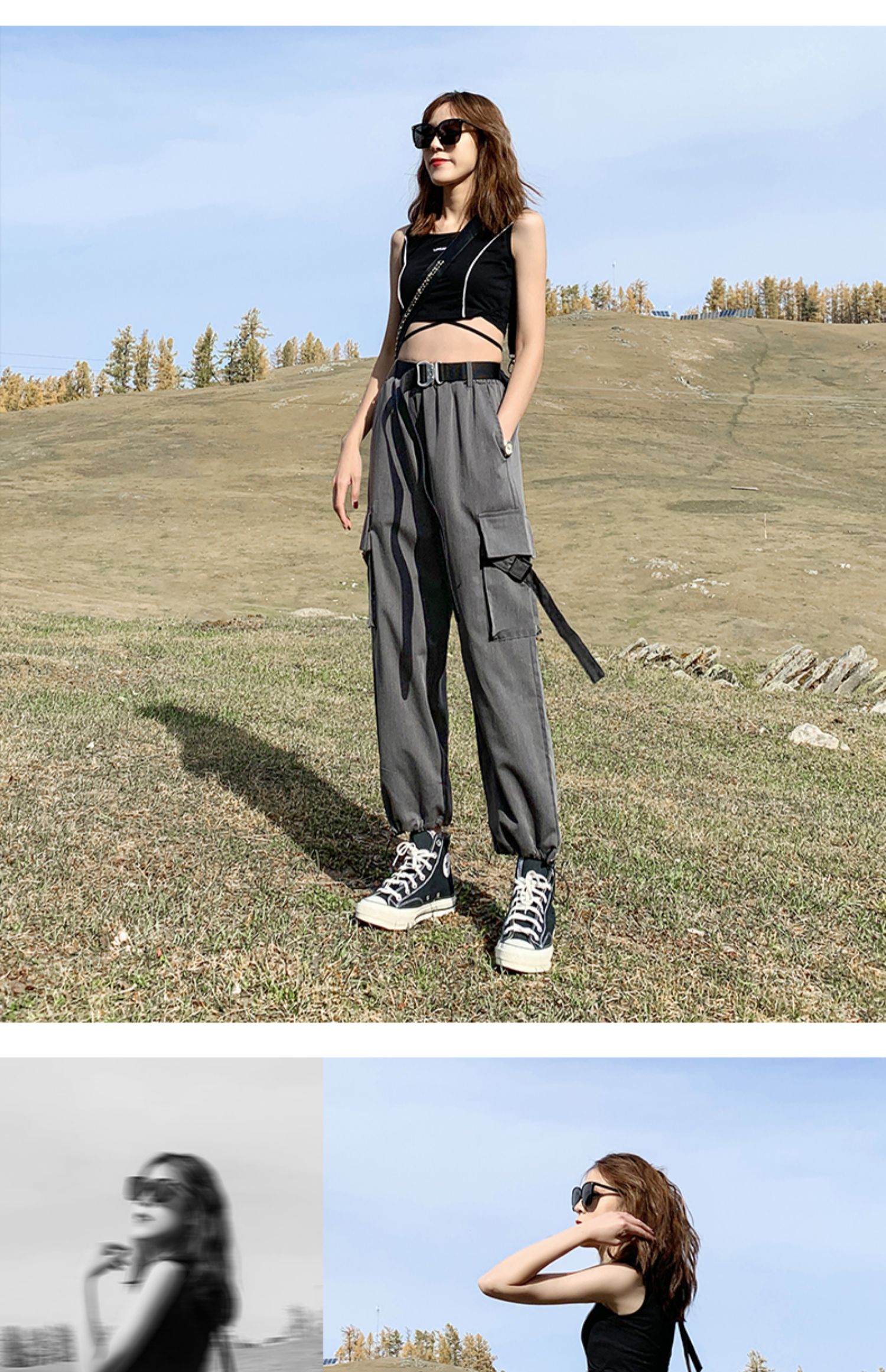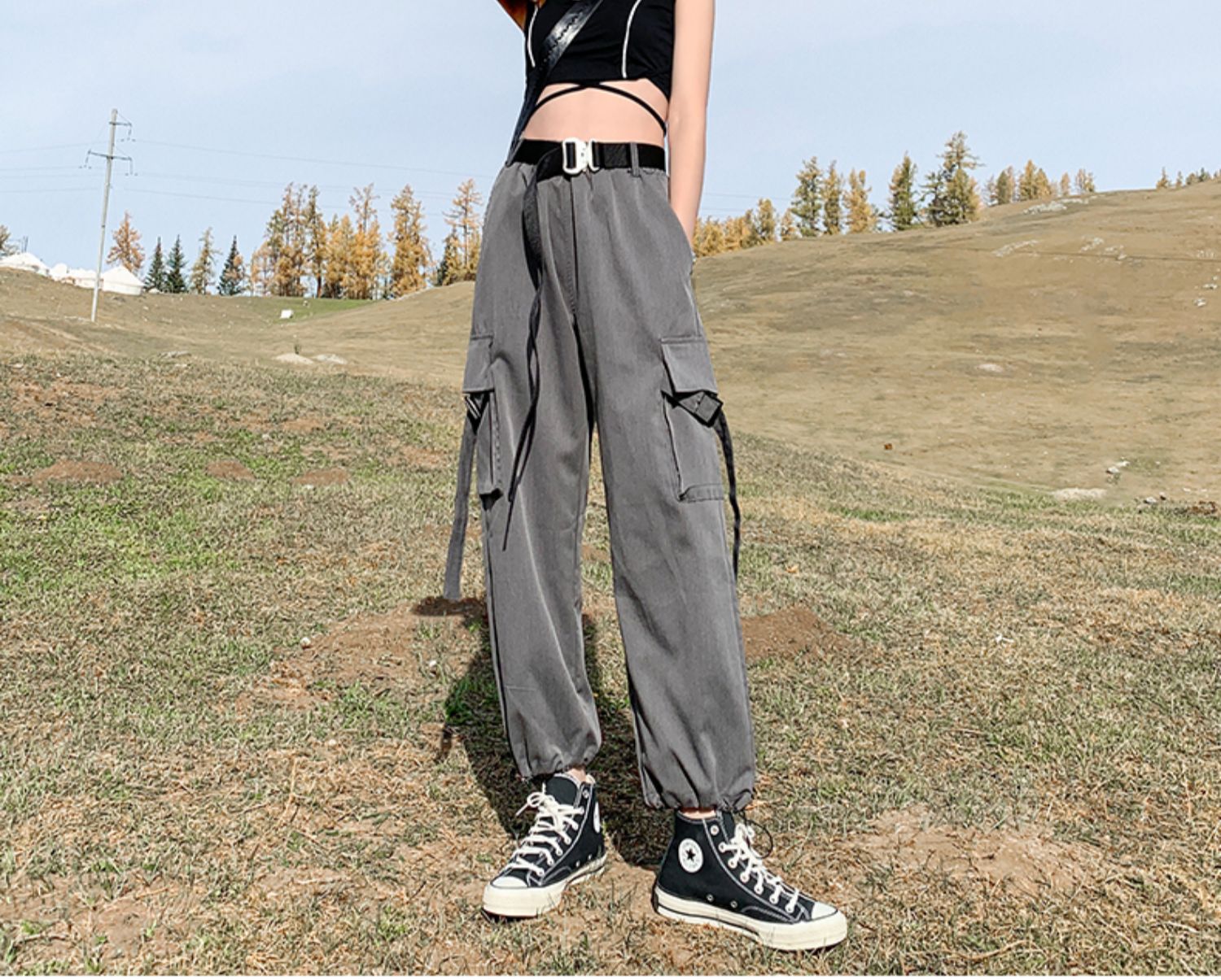 法式工装裤女宽松春秋季薄款束脚裤女ins高腰直筒运动休闲九珩铭