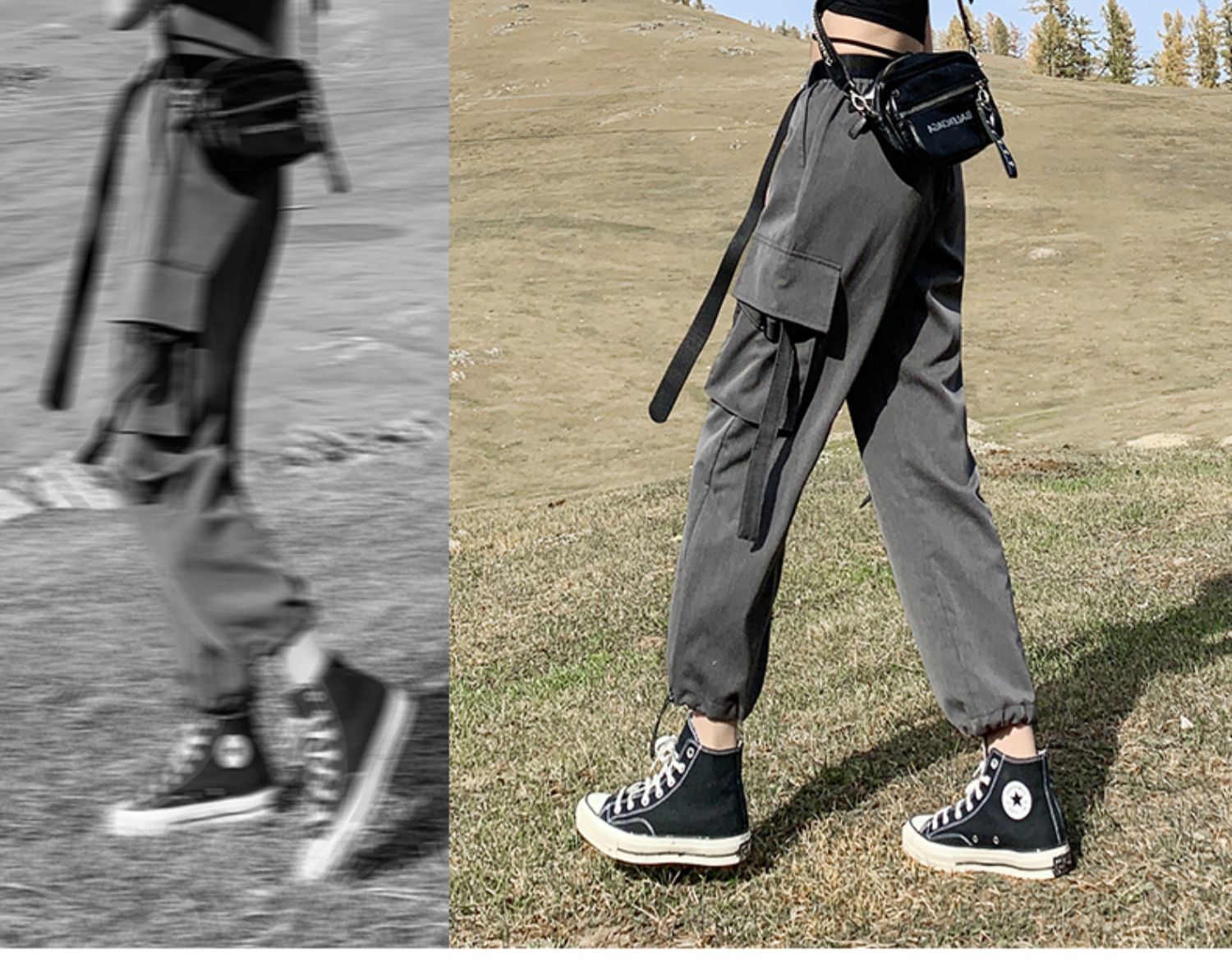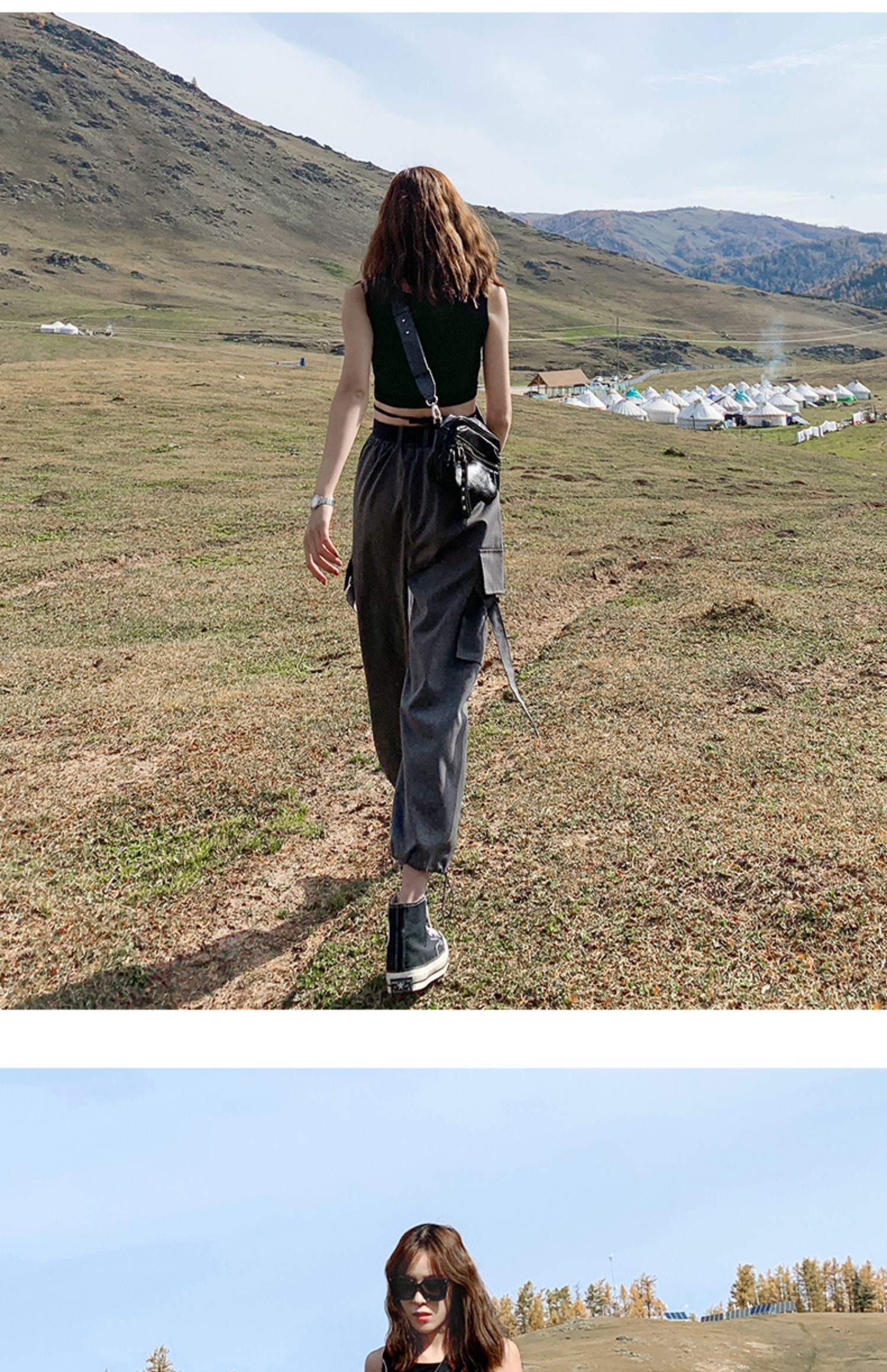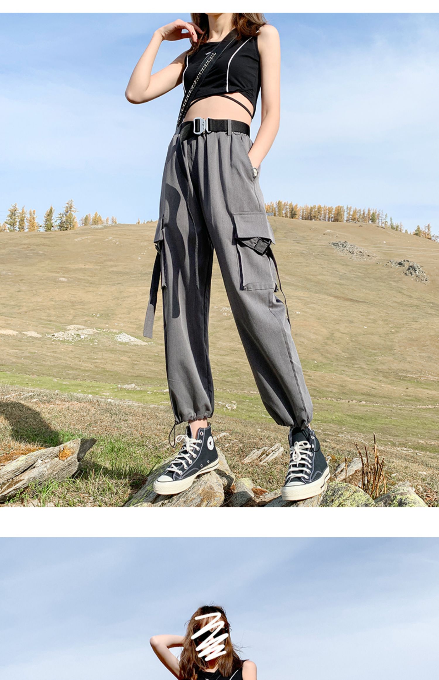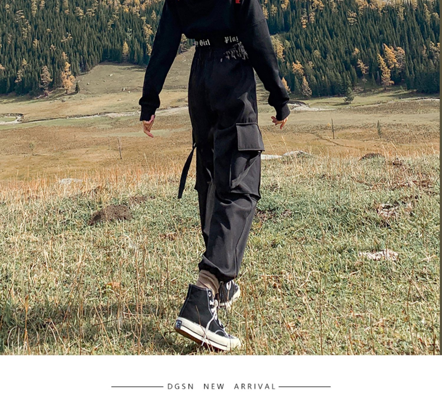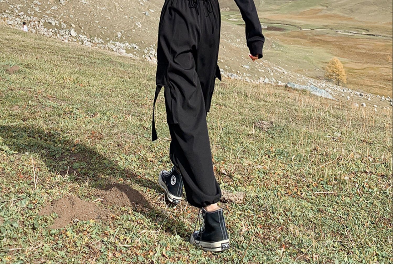法式工装裤女宽松春秋季薄款束脚裤女ins高腰直筒运动休闲九珩铭