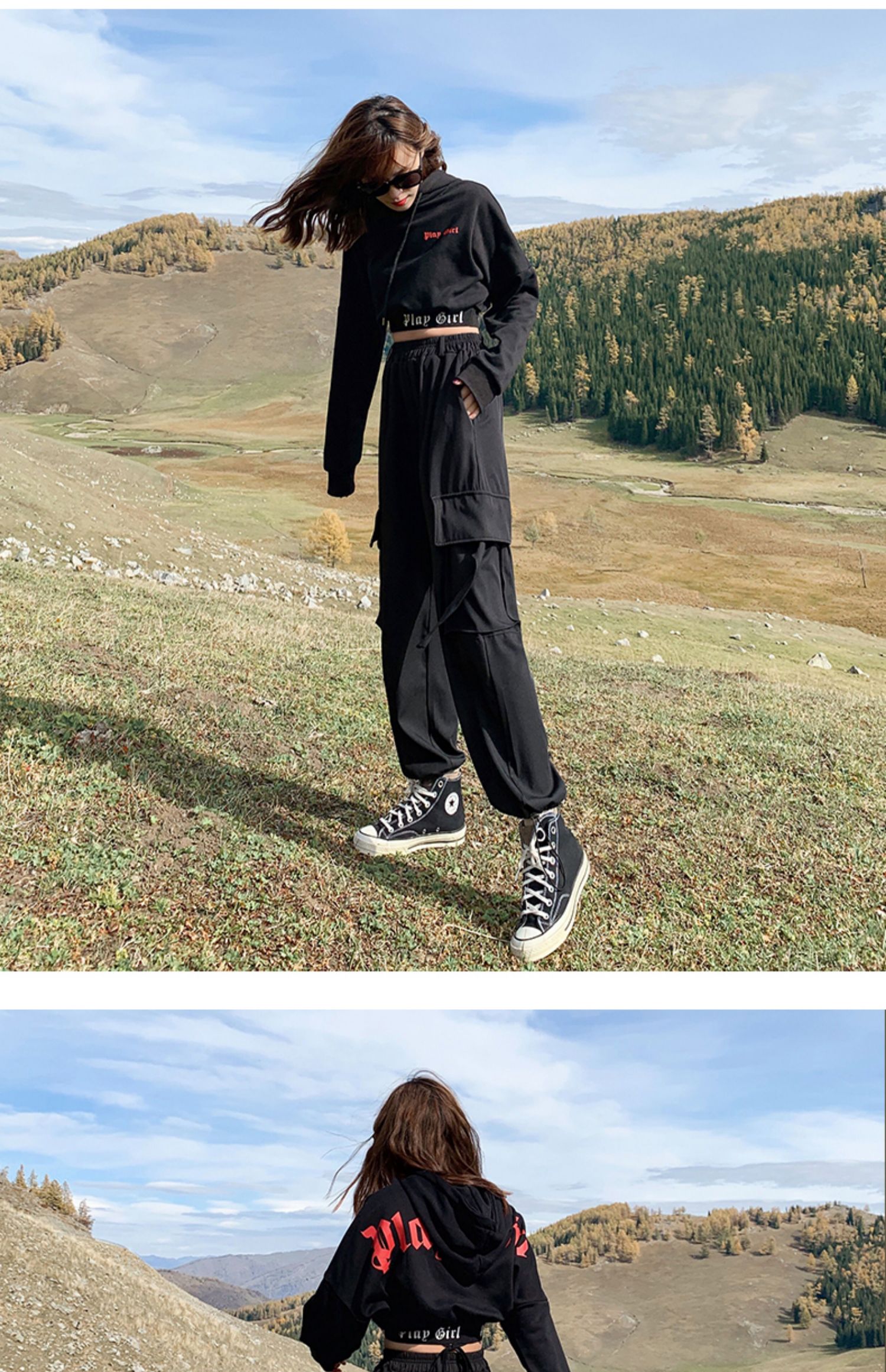 法式工装裤女宽松春秋季薄款束脚裤女ins高腰直筒运动休闲九珩铭스토어 가기