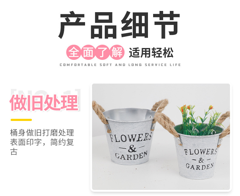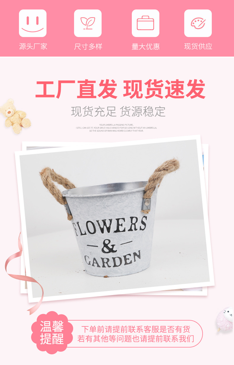 맞춤형 복고풍 철 꽃꽂이 버킷, 가정용 꽃 버킷, 꽃 가게 오래된 철 드라이 플라워 버킷, 창의적인 가정 장식 버킷