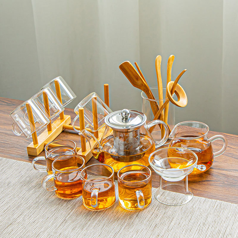 유리 차 세트 세트 홈 티 컵 사무실 쿵푸 차 세트 주전자 간단한 작은 차 테이블 다도스토어 가기