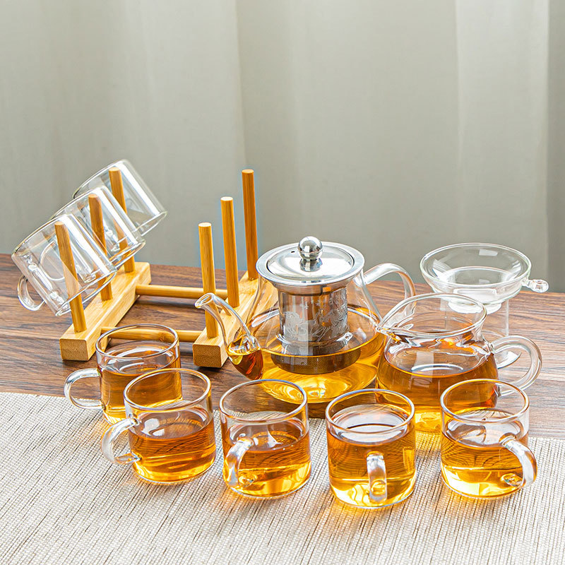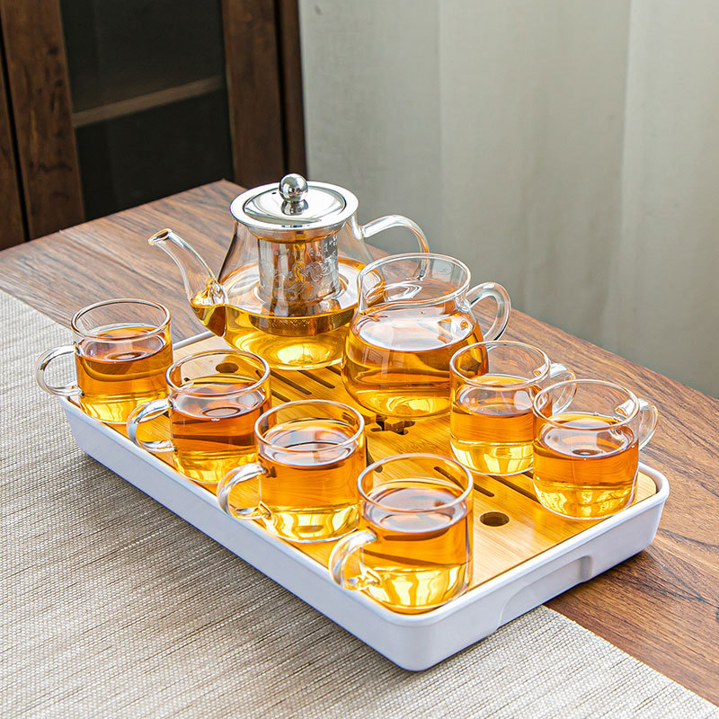 유리 차 세트 세트 홈 티 컵 사무실 쿵푸 차 세트 주전자 간단한 작은 차 테이블 다도