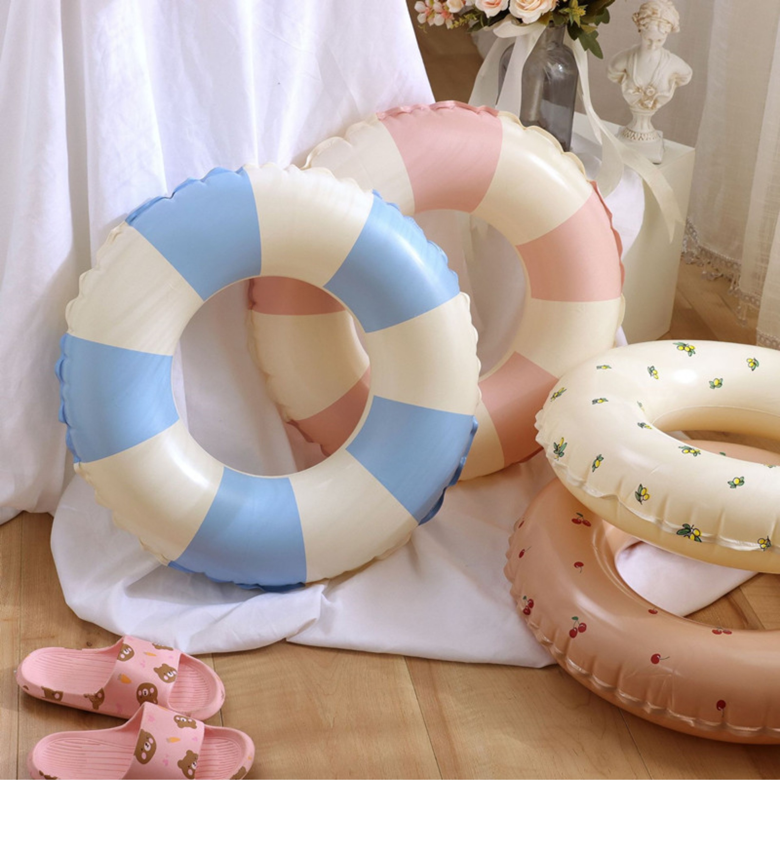 Ins Thickened 성인 어린이 덴마크 레트로 스트라이프 수영 반지 올리브 팽창식 아기 언더암 링 체리 Heng Ming
