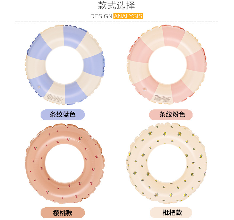 Ins Thickened 성인 어린이 덴마크 레트로 스트라이프 수영 반지 올리브 팽창식 아기 언더암 링 체리 Heng Ming스토어 가기